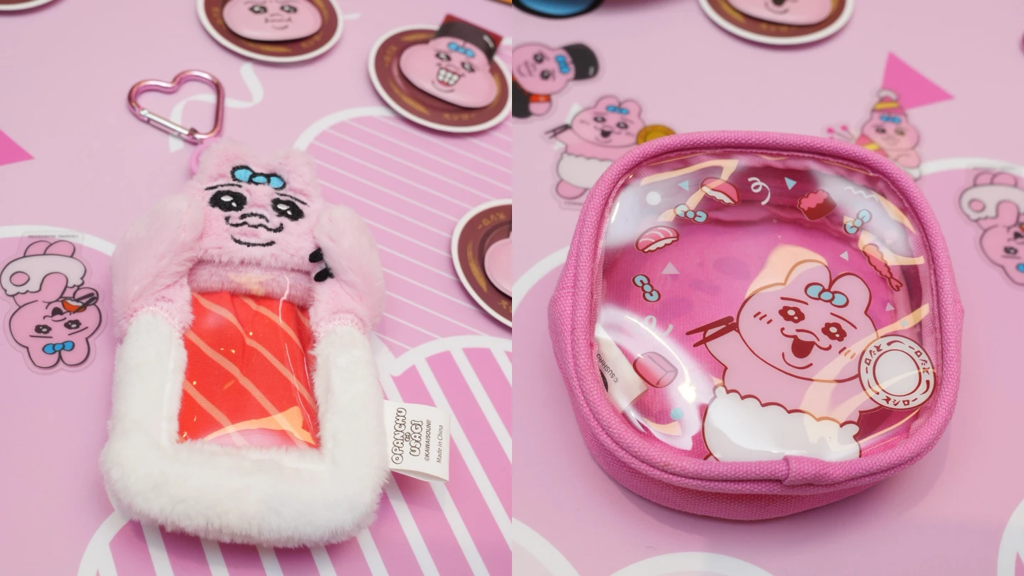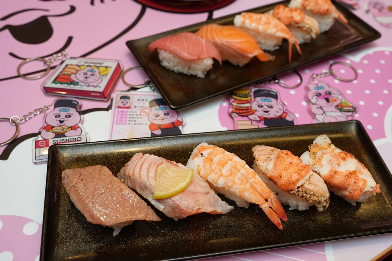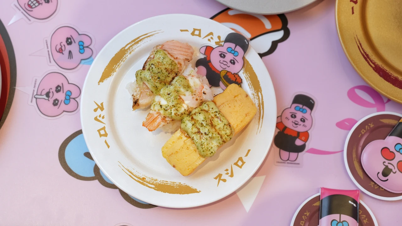 台灣壽司郎X《褲褲兔》粉紅派對11/24起正式開趴,4款聯名餐點包含「褲褲兔鮪魚萩餅 60元」、「炙燒羅勒派對3貫組 70元」皆隨餐附贈造型插卡(共6款,隨機贈送);「粉紅派對拼盤250元」附贈盲袋壓克力鑰匙圈(共5款,隨機贈送)、「褲褲兔雙拼派對餐170元」送褲褲兔洋芋片夾(共3款,可任選)。