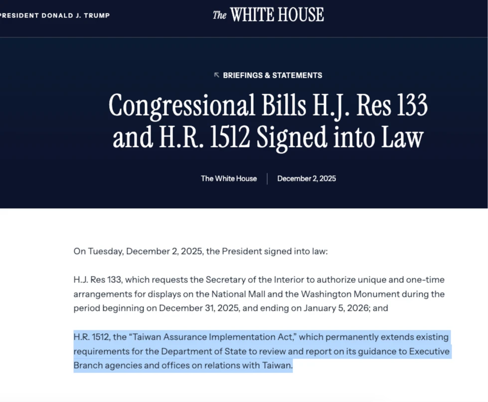 根據白宮網站12月2日公布,總統川普簽署的編號H.R. 1512法案,將「永久延長既有要求」(permanently extend existing requirements),也就是把原本一次性的檢視義務,改為長期且制度化的審查機制。