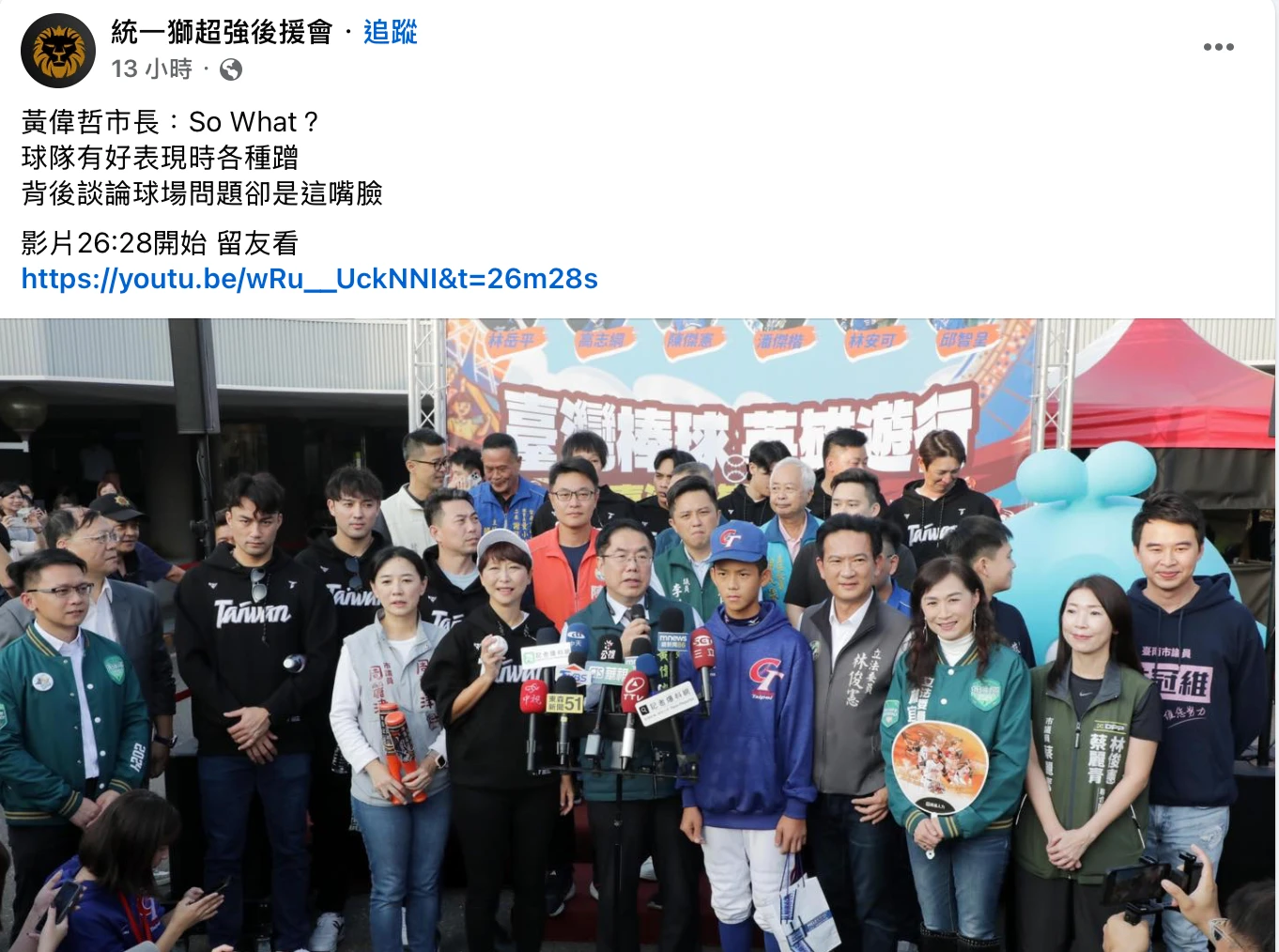 球迷更是炸鍋,不滿市長黃偉哲開幕戰未現身,如今依舊神隱未發聲,紛紛到黃偉哲臉書上留言,怒批「傲慢」、「想分一杯羹」、「真愛錢」,更憤而將體育局Google地圖名稱改為「韭菜收割局」。