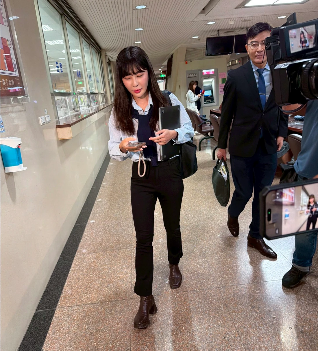 靈骨塔詐騙今早再度開庭,庭訊中午結束後,記者問李宜諪「會不會擔心律師執照遭撤?」她淡淡說:「這要等他們(律懲會)審議。」