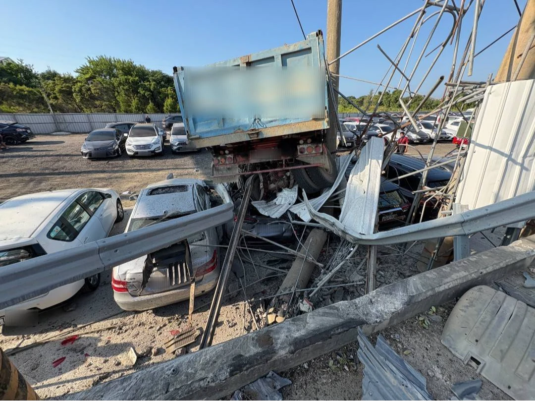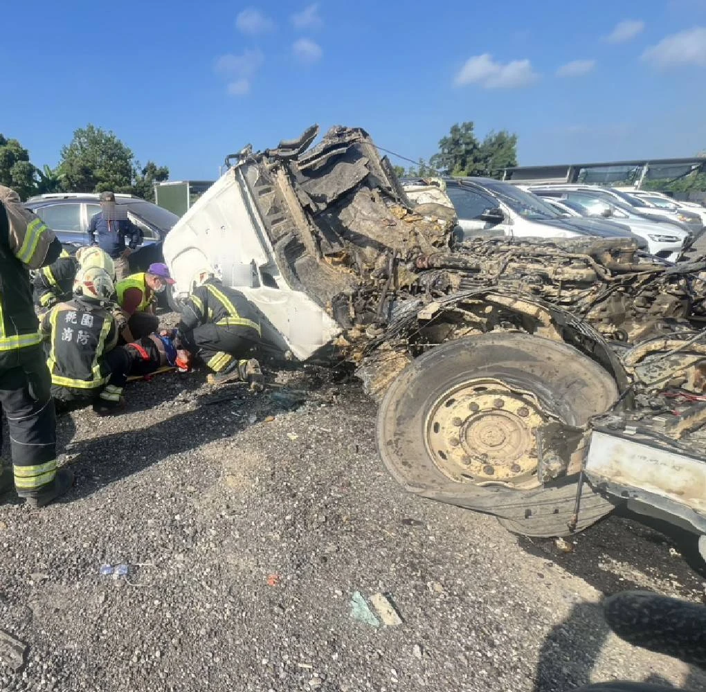 據悉,張姓男子(59歲)今天下午2時38分左右,駕駛一輛大貨車沿著國道2號甲線直行,途中行經線圳頭交流道西向出口匝道處,不慎失控人車衝出匝道槽化島,撞進路邊一處民營停車場內,強大撞擊力導致停車場內多輛車受損、張男則卡困車內。