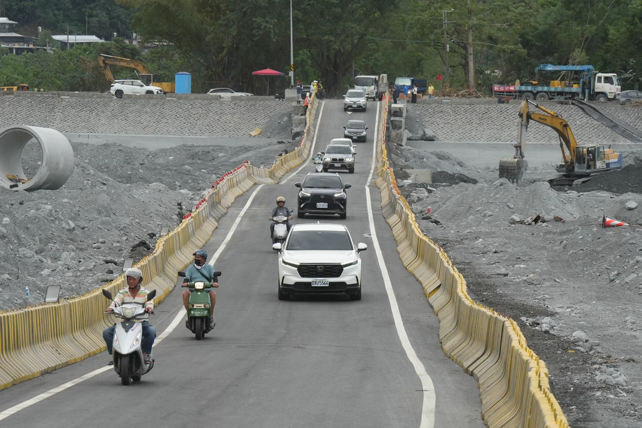 【記者劉沛妘、梁建裕/花蓮報導】花蓮馬太鞍溪堰塞湖溢流,洪水沖斷馬太鞍溪橋造成台9線中斷,交通部要求公路局搭建涵管便橋應急。公路局表示,經過2個禮拜動員超過500人次、各種大型機具輪番進場、日夜搶修,第一階段涵管便道終於在今(10)日下午3點正式通車,不少在地居民紛紛來現場觀看這歷史性的一刻,還有民眾放鞭炮慶祝。