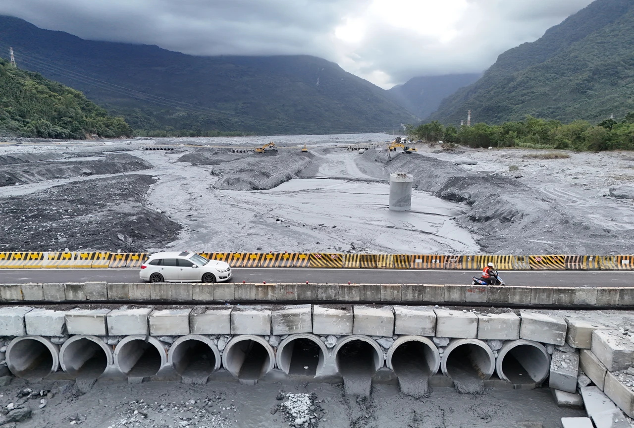 公路局表示,東區養護分局全力動員,克服河川水位、水量不斷變動的施工環境,完成數度水路改道及三道涵管埋設,各種大型機具輪番進場,期間並與相關機關積極協調配合下,順利於今日下午開放通車,比預定10月15日通車的目標,提前5天。