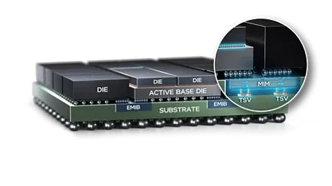 相較於CoWoS,EMIB擁有數項優勢:首先是結構簡化,EMIB捨棄昂貴且大面積的中介層,直接將晶片使用內嵌在載板的矽橋(Bridge)方式進行互連,簡化整體結構,相對於CoWoS良率更高。其次是熱膨脹係數(Coefficient of Thermal Expansion, CTE)問題較小,由於EMIB只在晶片邊緣嵌矽橋,整體矽比例低,因此矽與基板的接觸區域少,導致熱膨脹係數不匹配的問題較小,較不容易產生封裝翹曲與可靠度挑戰。