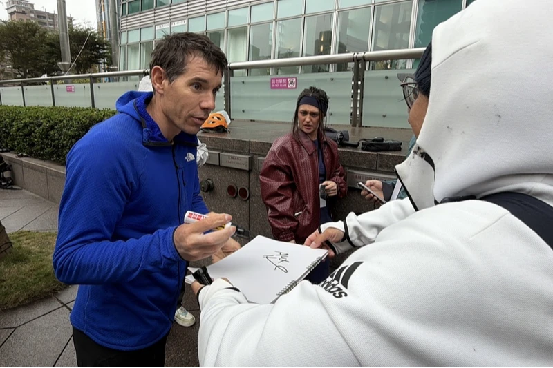 今天台北天氣陰雨綿綿,霍諾德今天先到台北101進行試爬,周邊交通也進行管制,霍諾德確定安全措施後,與攝影團隊交換意見,也吸引不少路過民眾駐足圍觀,紛紛舉起手機紀錄,事後,霍諾德也熱情地為粉絲簽名互動。