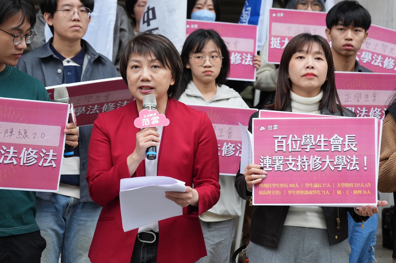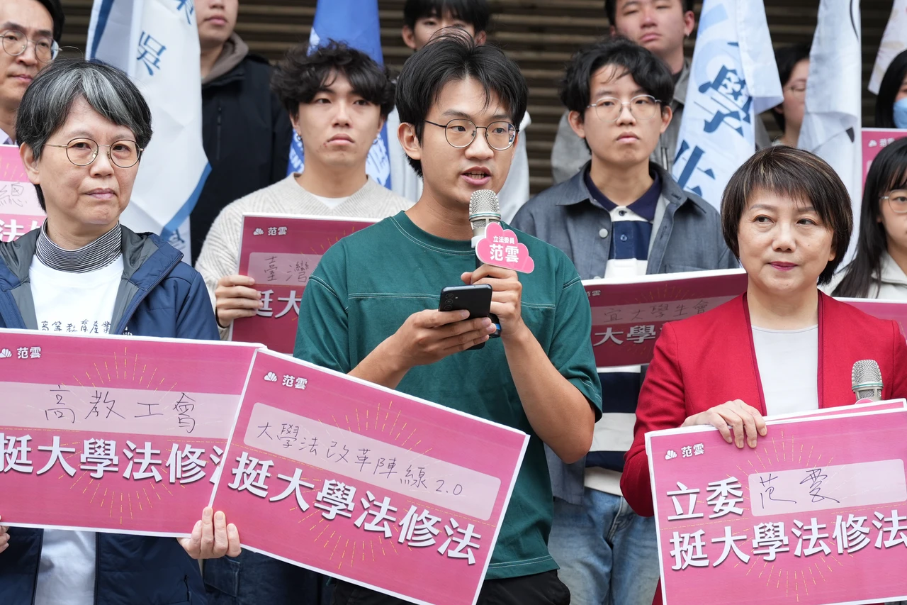 【記者王良博/台北報導】《大學法》自2005年修正至今,已經20年未修,立委范雲今(4)日與高教工會、大學法改革陣線2.0等師生團體,共同召開《大學法》修法提案記者會,范雲說,她提出的《大學法》修法版本,涵蓋「開放、彈性新高教」、「強化師生權益」及「完善治理與監督機制」三大面向,與會的師生代表則喊話,高教改革不能再等,呼籲教育部盡速推出部版修法草案。