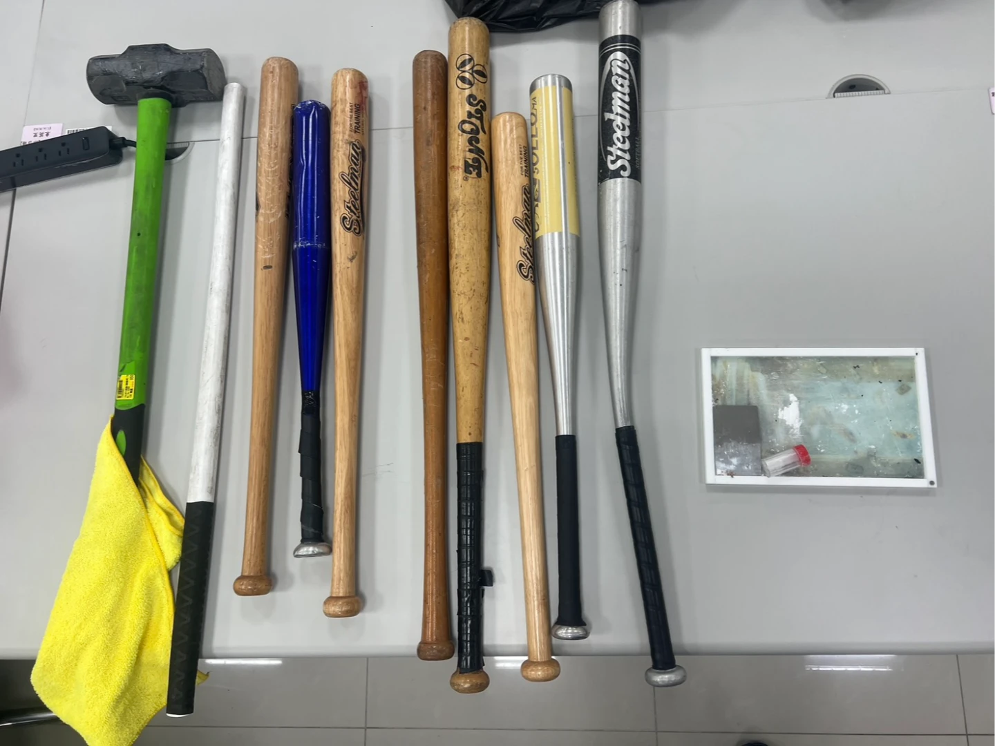 警方進入屋內發現被害林姓男子(28歲)、張姓男子(22歲)、徐姓男子(24歲)頭部撕裂傷鮮血直流,立即通知救護車送醫,另外在場內逮捕洪姓主嫌(34歲)及同夥夏男(33歲)、連男(21歲)、黃男(25歲)、張男(29歲)、黃女(29歲)、陳男(27歲),查扣鋁棒4支、木棒6支、鐵鎚1支與毒品K他命。