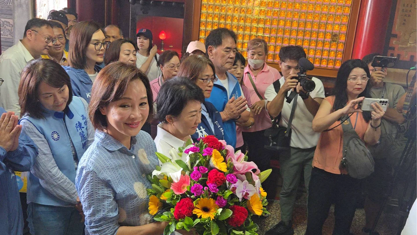 柯志恩今日在盧秀燕陪同下,前往前鎮慈德宮參香祈福,爭取地方支持、為選戰暖身。王勇超攝 zoomin