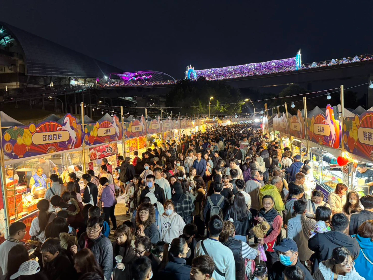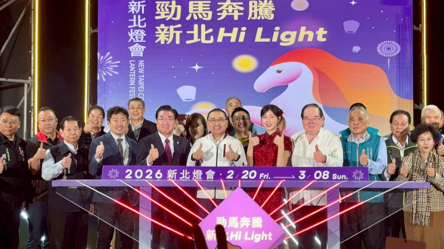 【記者曾伯愷/新北報導】2026新北燈會「勁馬奔騰・新北 Hi Light」今晚在新北大都會公園正式登場!市長侯友宜攜手韓籍啦啦隊女神安芝儇,共同點亮15公尺高的紅寶馬主燈,現場16個主題燈區,170攤人氣異國美食、傳統小吃及文創市集進駐,搭配聲光音效震撼全場,讓到場賞燈民眾體驗不一樣的視覺與味覺雙重饗宴。