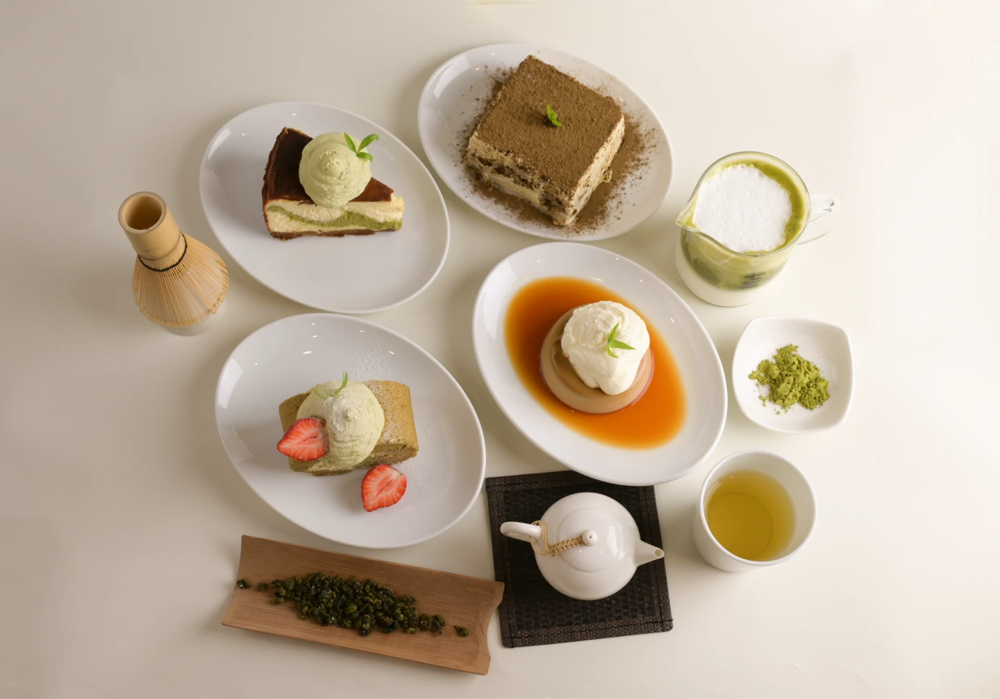 還有「茶靈魂系甜點」,花蓮蜜香紅茶布蕾 130元、炭焙烏龍提拉米蘇250元、三峽碧螺春巴斯克250元、清香烏龍奶凍捲250元,以及與鮮乳坊合作的「茶拿鐵系列」飲品,共有5種風味可選擇:三峽碧螺春、清香烏龍、炭焙烏龍、紅玉紅茶、花蓮蜜香紅茶,售價180元。歡慶開幕,1月14日前至內用台灣茶泡飯套餐,即贈送「茶拿鐵系列」買一送一優惠卷(限外帶使用) 。