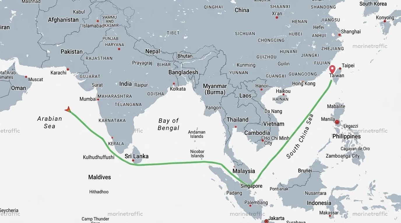 台塑君善輪通過荷姆茲奔赴麥寮港 已航行至印度西海岸、200萬桶5/6抵台