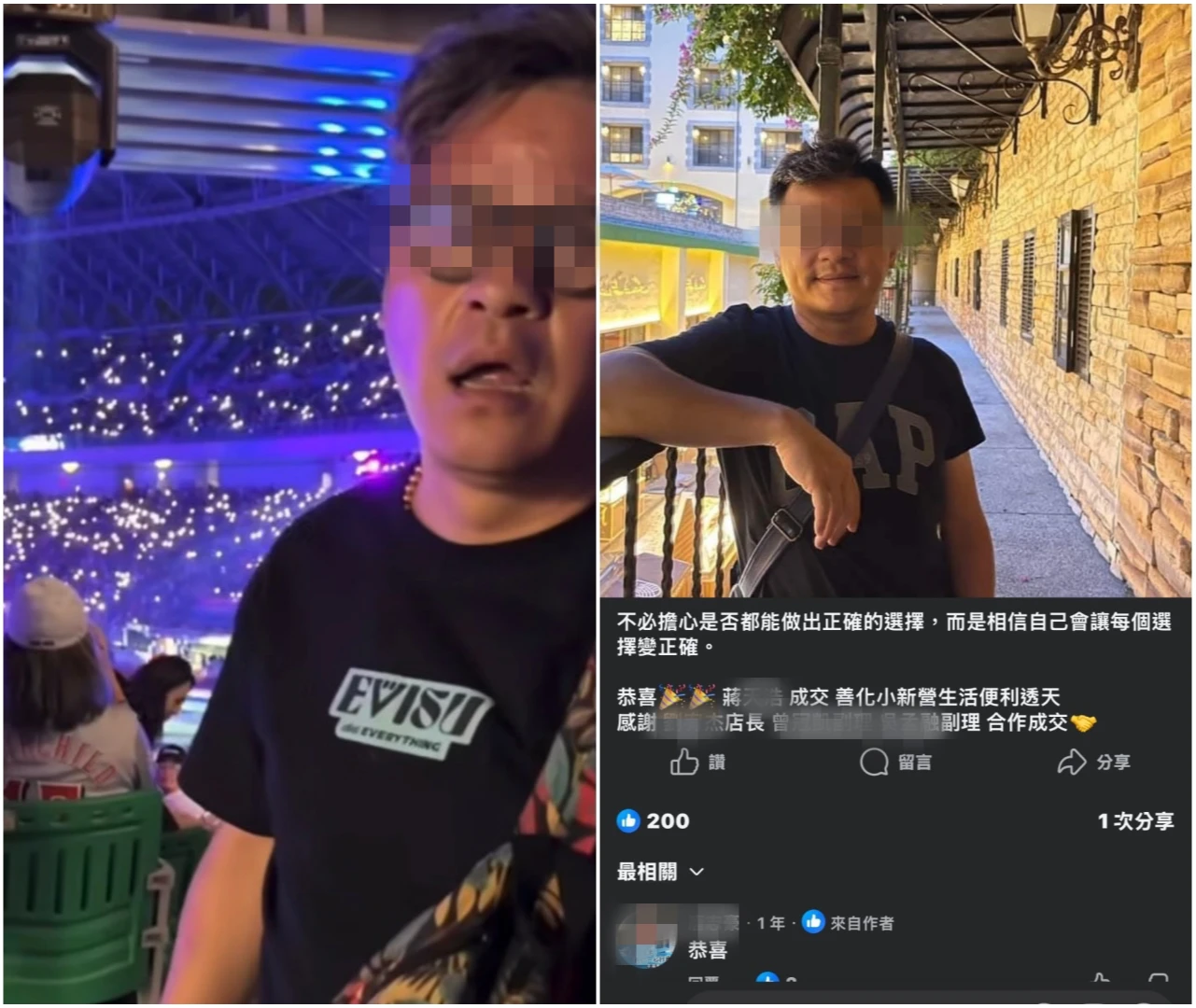 亞太國際棒球訓練中心昨晚舉辦開幕戰,一名蔣姓男子(左圖右)在現場鬧事,有工讀生(穿著STAFF制服)前往制止,蔣男竟對工讀生猛搧巴掌攻擊(右圖),引爆全網怒火。取自Threads@huhu_artnhandmade