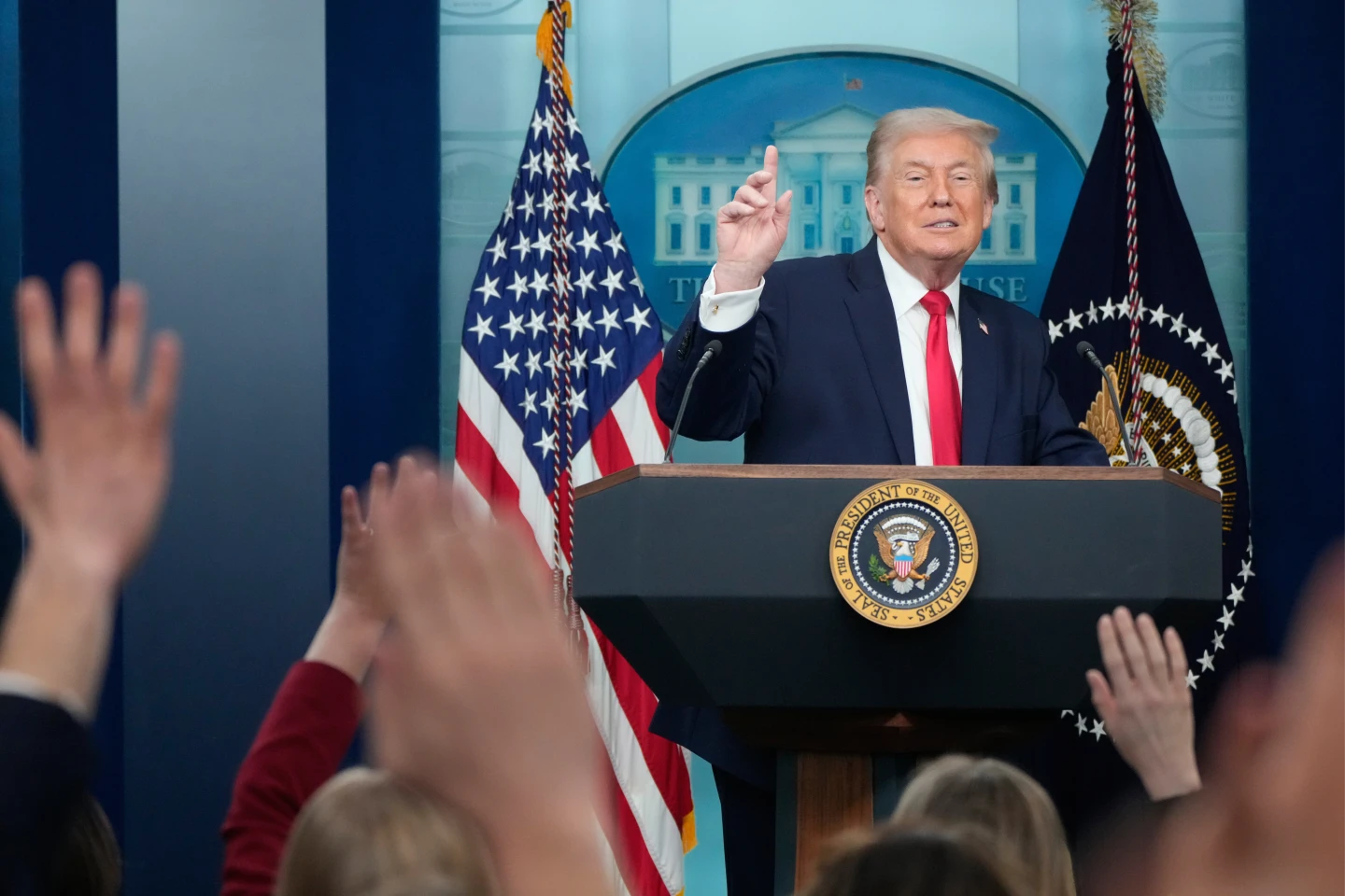 白宮發言人李威特(Karoline Leavitt)1月20日進行新聞簡報,她會前突然發文宣布,將有「特別嘉賓」一同加入。川普(Donald Trump)隨後和她一同現身白宮新聞簡報室舉行記者會。