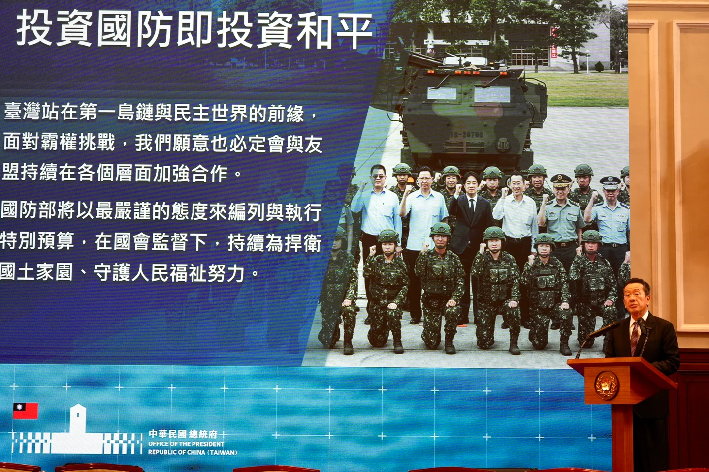 顧立雄簡報時說,當前我國面臨空前未有的保衛案,國軍秉持實力備戰不求戰,奠定過去10年穩定國防預算成長,規劃在2026至2033年編列特別預算,建立可恃戰力。