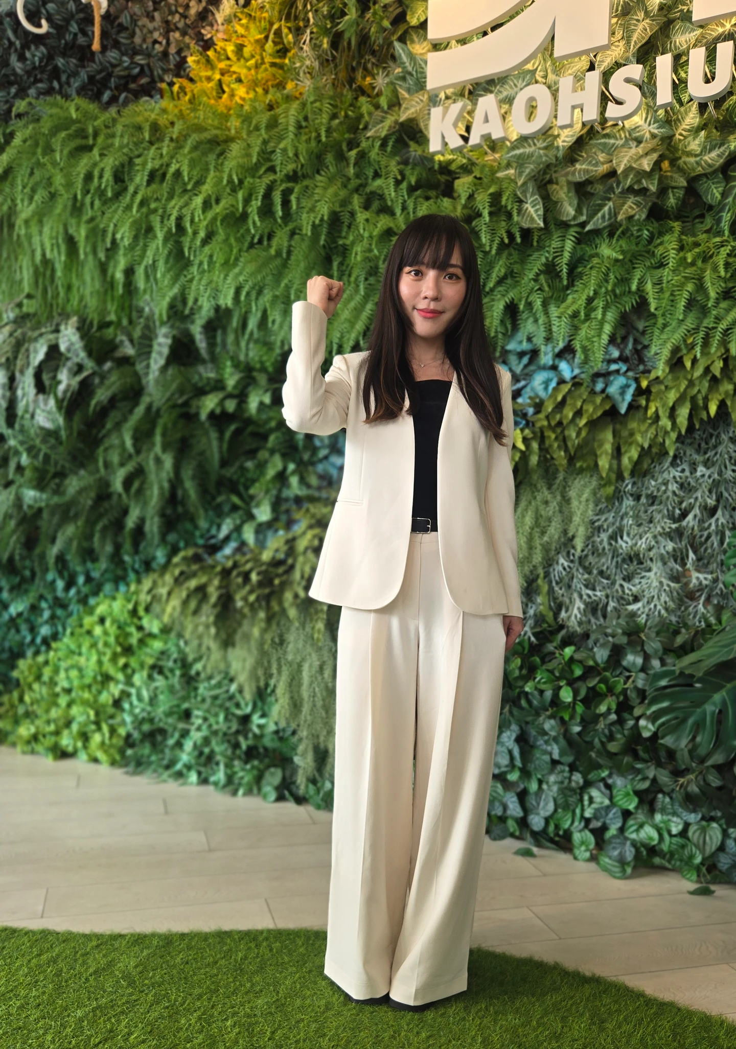 對於今天穿著幹練,是否象徵特別意義?她說,希望呈現穩重且有氣勢的形象,呼應「啦啦隊隊長」角色,帶領高雄市民為「高雄隊」加油;並呼籲黨員5月24日踴躍投票。