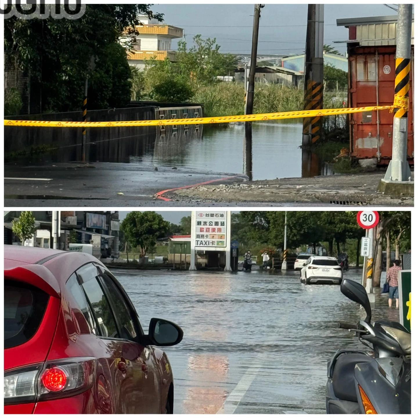 宜蘭今早雨勢稍歇,但積水未退,在地人在臉書社團「宜蘭知識+」發文說,「第一次覺得回家好遠~四台網路全都斷線,這次颱風是登陸在宜蘭吧⋯」,附上積水未退的馬路照片,羅東倉前地下道積水也未退。