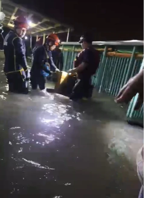 但屋外籠內的狗全都泡湯,當地義消及熱心人士聞訊,趕赴現場協助撤離,一路忙到今天凌晨,將戶外關在籠內的毛小孩救出,有的狗狗嚇到腿軟,另有狗狗還樂得戲水。