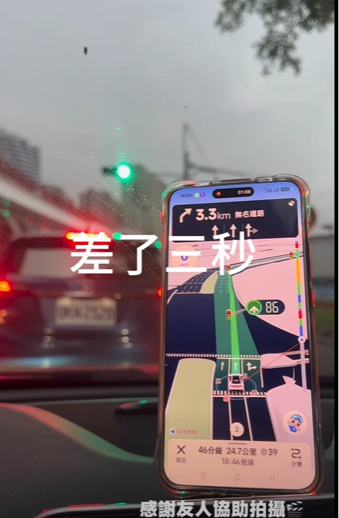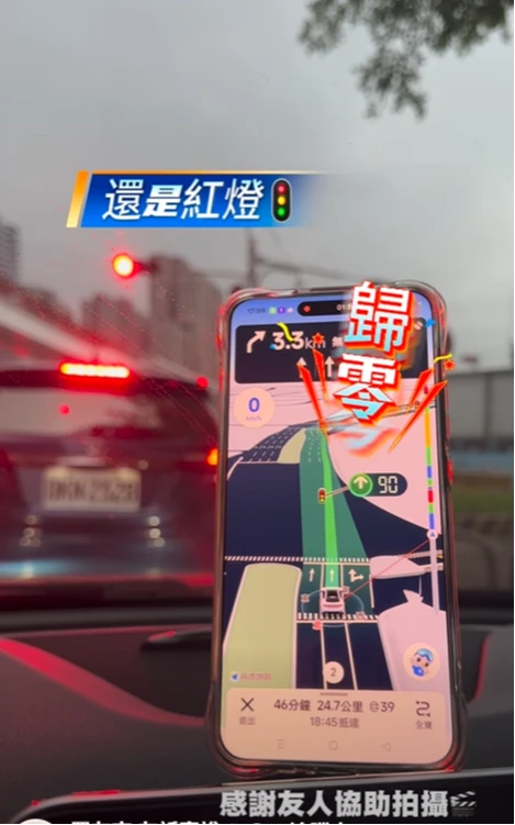 媒體人羅友志也實測,發現紅綠燈的秒差約2-3秒,APP顯示紅燈歸零變綠燈,但實際上為紅燈,仍需要靠駕駛自行判斷,他並推論秒數應是AI數據分析。「這個時代,你禁到密不透風,到底是禁心安的?還是禁老百姓智商的?」