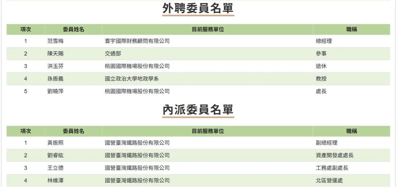 但根據台鐵會議紀錄,本次會議出席委員共計8人,其中,外聘委員5人、內聘委員3人,符合「民間參與公共建設甄審委員會組織及評審辦法」第4條,及第8條第2項及第3項「甄審會會議應有委員總額2分之1以上,且至少5人以上之出席,始得開會。甄審案件屬本法第三條第二項所稱之重大公共建設者,出席委員不得少於7人。前項會議之出席委員,其中外聘專家、學者人數,不得少於出席委員人數之2分之1。」規定。