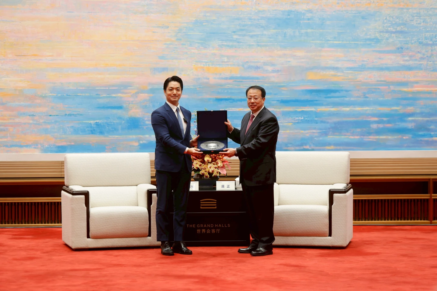 而雙方也於會面後互贈禮物,蔣萬安先贈送「雙城共榮.北捷紀念錫盤」,龔正則回贈《玉蘭綻放・堅如磐石》藝術瓷瓶。