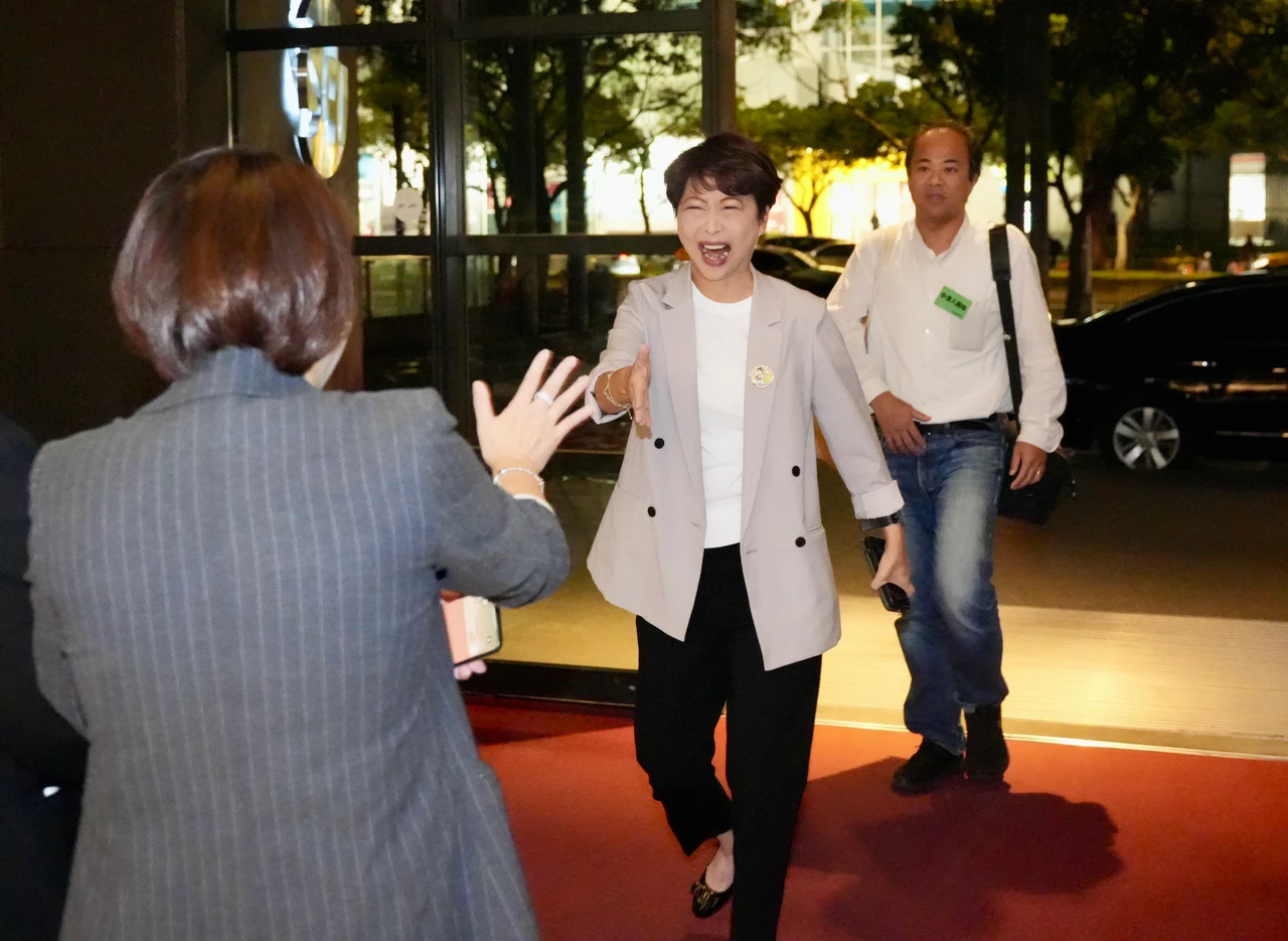 陳亭妃晚間6點06分抵達電視台,她受訪回應,初選確實非常激烈,難免會有一些擦槍走火,自己只是提醒同志們要小心,不要觸法,沒有不愉快。