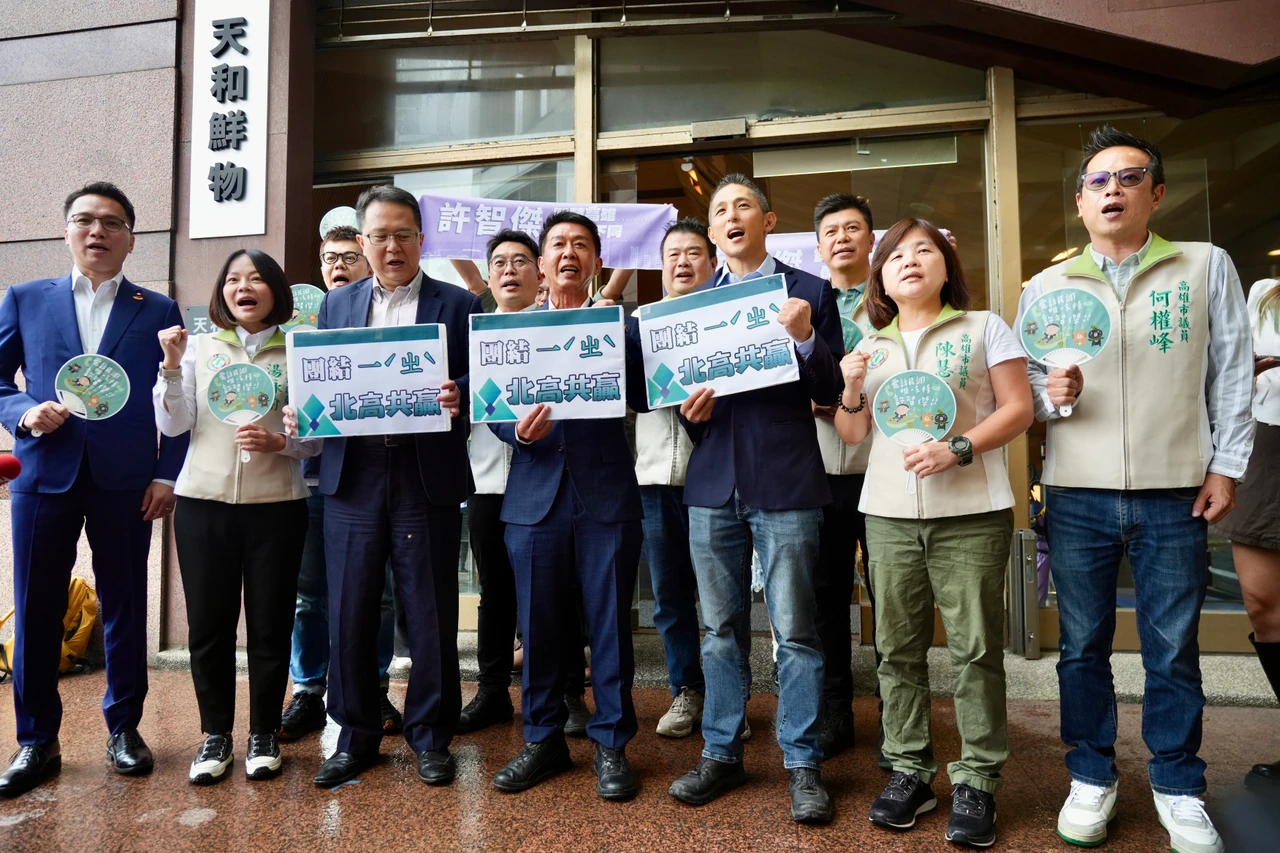 值得注意的是,到場議員遍佈新潮流、正國會、湧言會派系及無黨籍議員,氣勢十足,大夥舉出「團結一ˊㄓˋ北高共贏」手版喊口號,相當熱鬧。