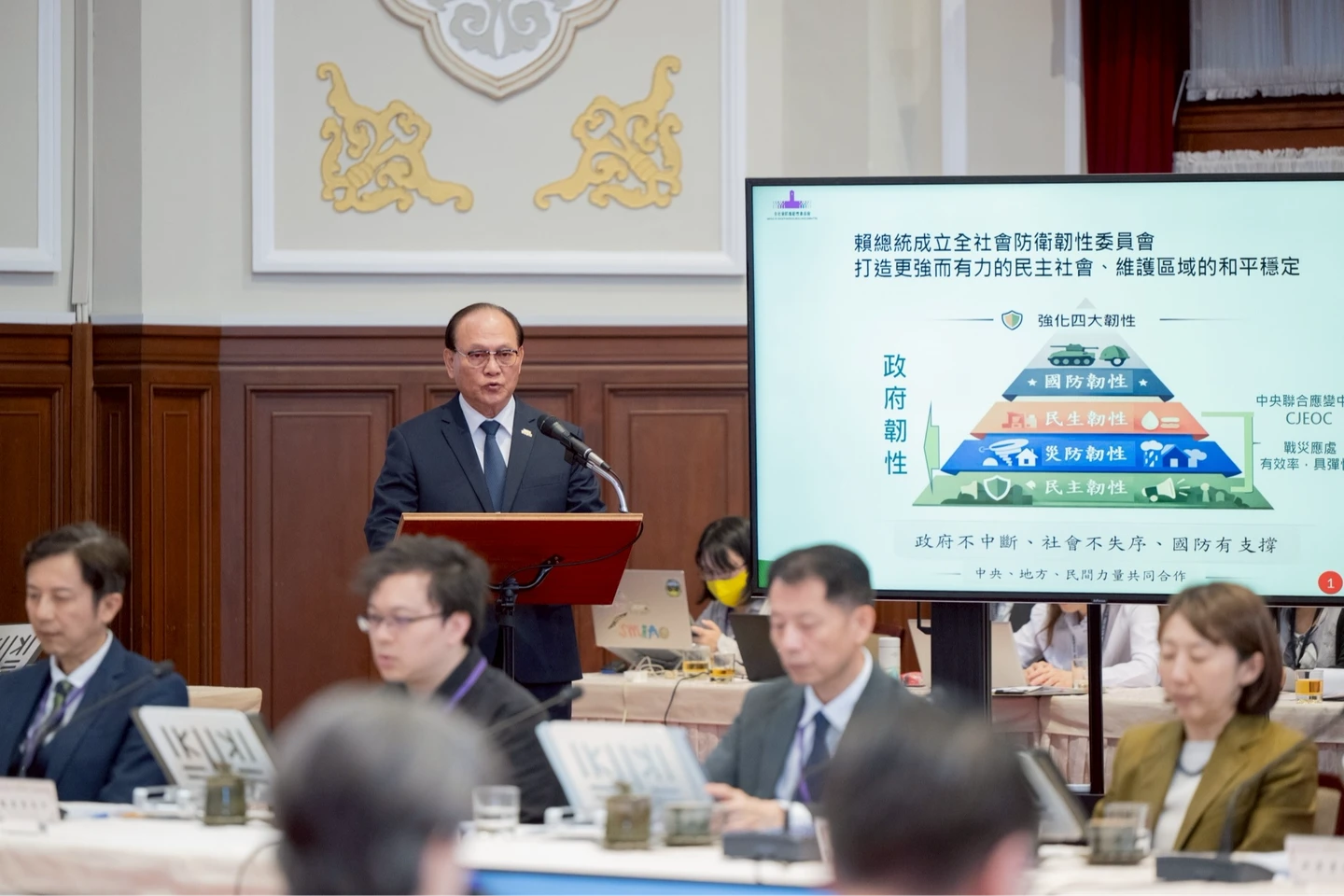 賴表示,第二、提升中央與地方政府防衛韌性協作的能力。賴清德請行政院及各部會,持續扮演政策制定與資源整合的角色,與地方政府共同落實全社會防衛韌性的執行工作。
