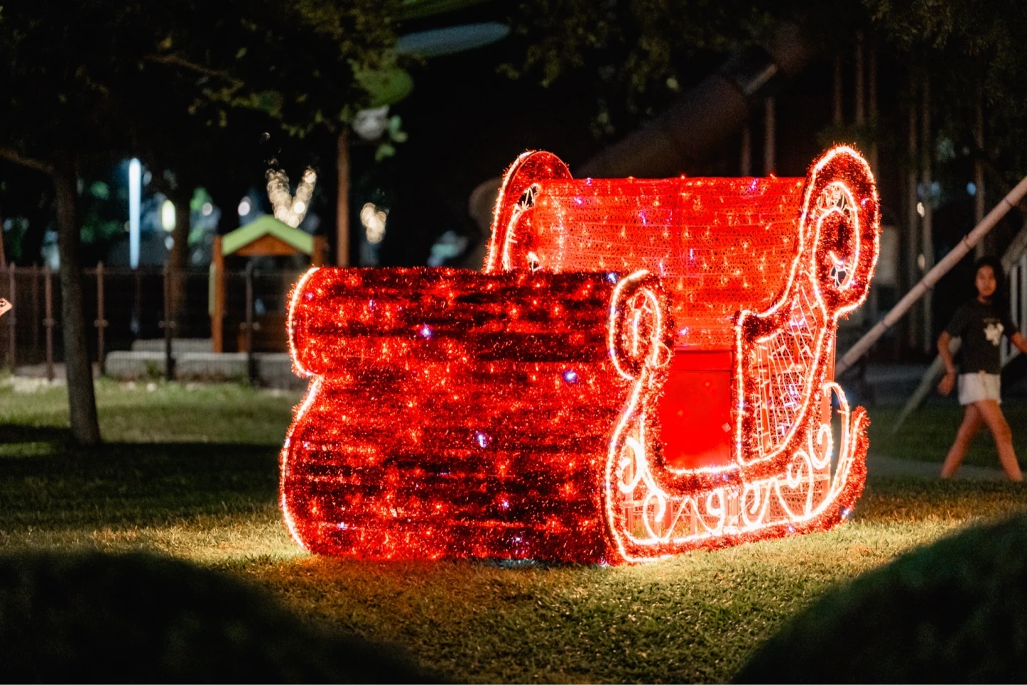 中央公園的聖誕燈飾裝飾活動,自即日起至明年1月4日,每晚5時30分起點燈,主燈區每30分鐘更有煙霧雪花燈光秀,節慶氛圍滿點。