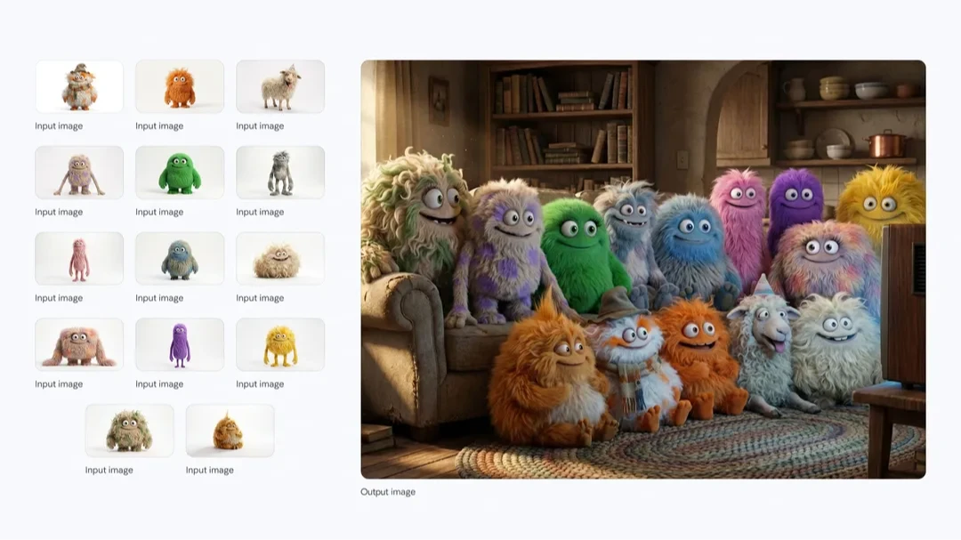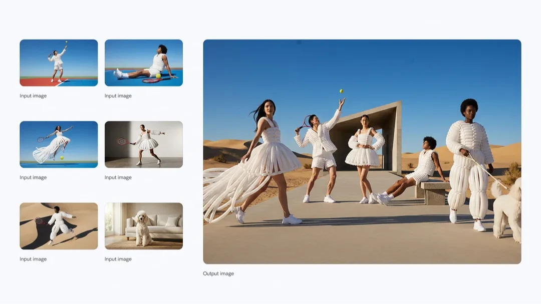 6. 混合影像並保持多個角色的一致性:即使多個角色同時出現,也能保持一致性和相似性。依輸入圖像內容而異,最多可混合6到14張完全獨立的影像,創造出新的作品。