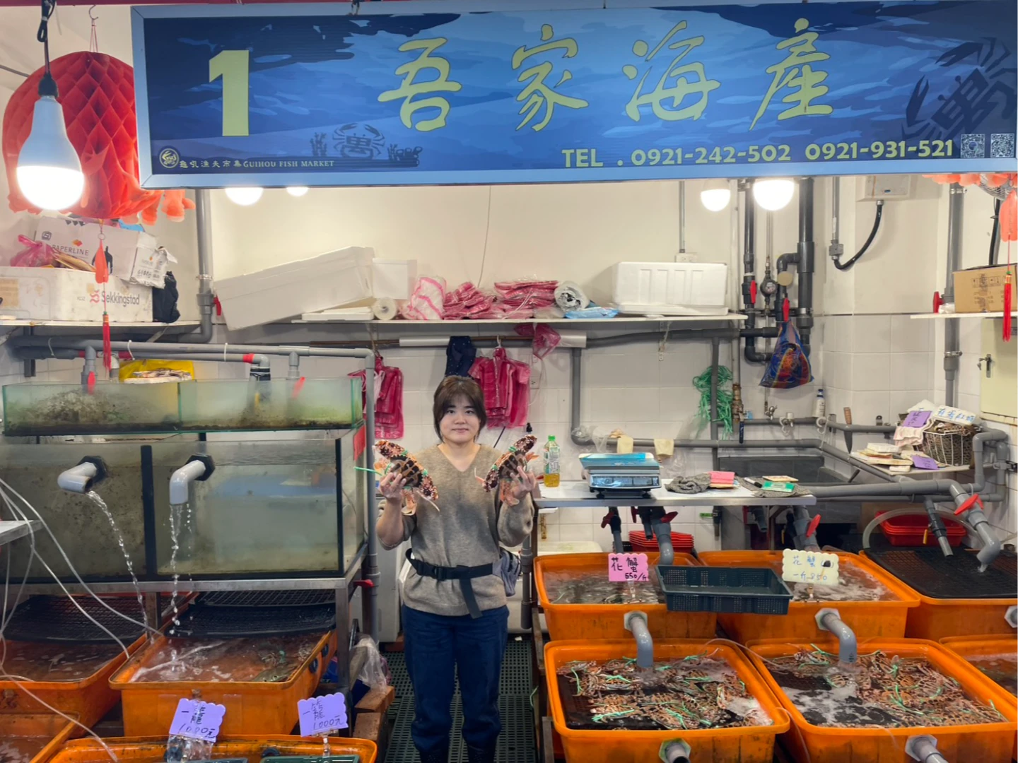 吳小姐分享經營成果說,初始不熟悉成本計算,一度把商品售價訂得比成本還低,靠客人提醒才發現疏失立即調整慢慢學習,營運才走上正軌。她說這邊攤位,大多是販售自家漁船捕撈漁獲,價格相對較一般親民,歡迎大家來找她選購鮮甜飽滿的萬里蟹。