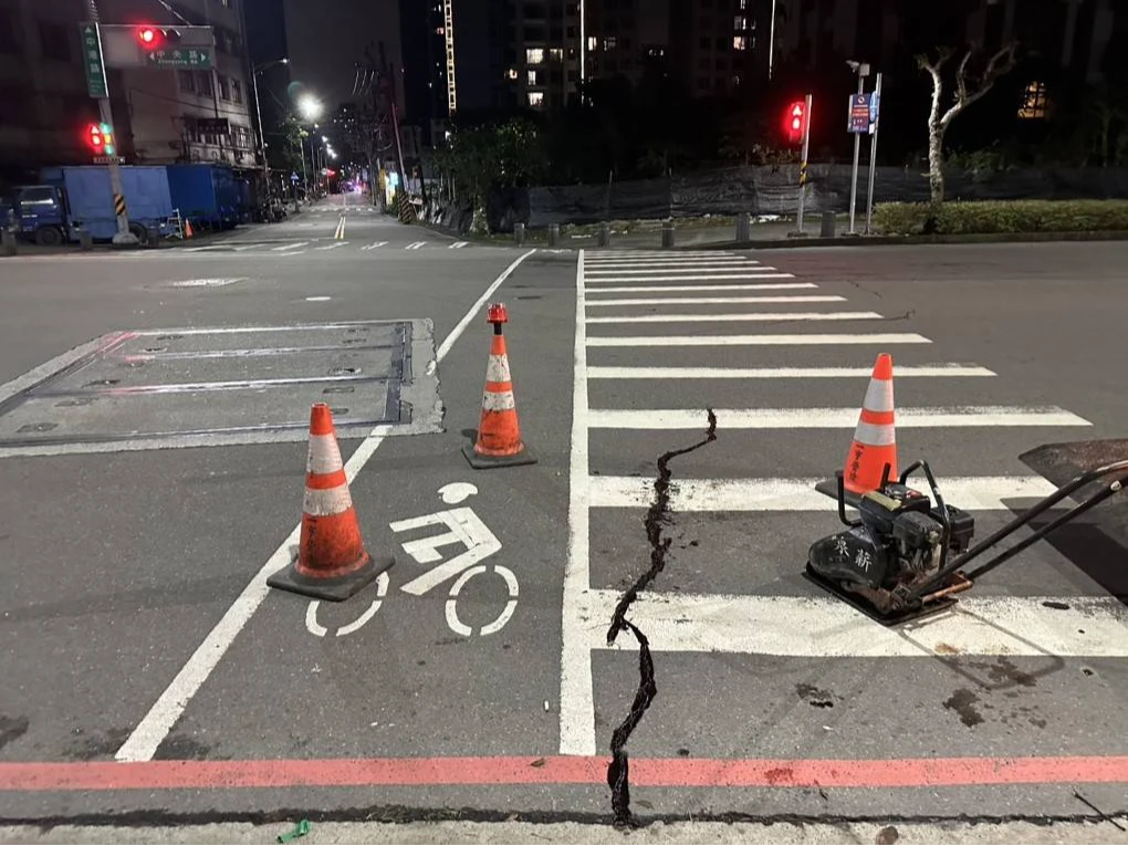 新莊區中央路(宏匯廣場周邊道路)因地震出現路面裂縫,已由養工處完成填縫改善,後續將辦理刨鋪工程,維護道路品質與行車安全。