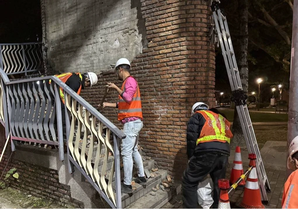 其中新莊區龍安陸橋於地震後出現部分柱面磁磚掉落,養工處則說,橋梁主體結構初步檢視並無異常,掉落磁磚已於今天凌晨3時30分清除完成,後續將全面拆除剩餘磁磚,預計12月30日完成後開放通行。
