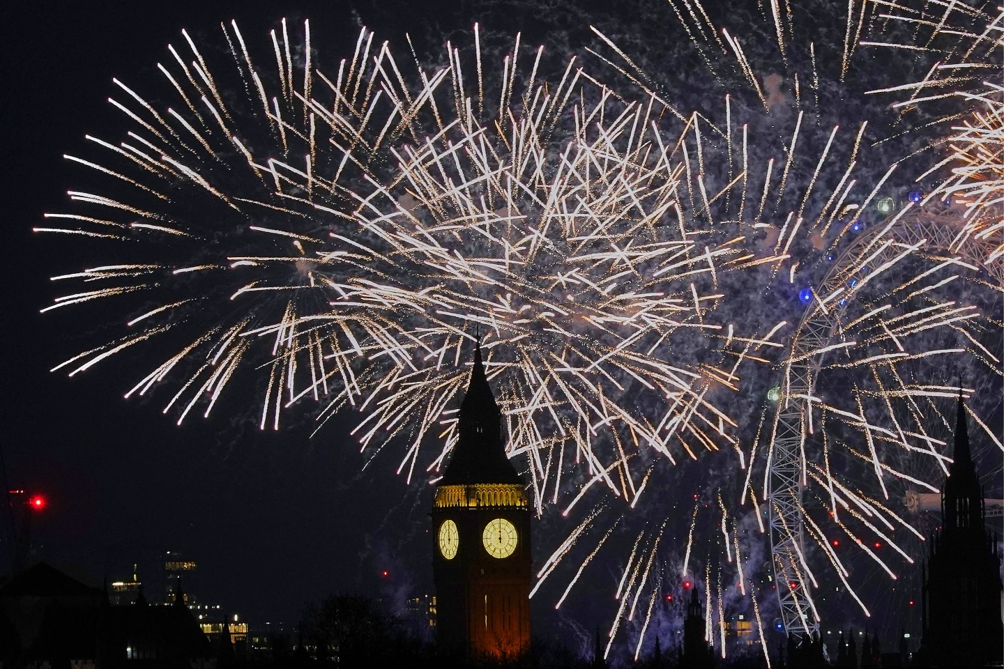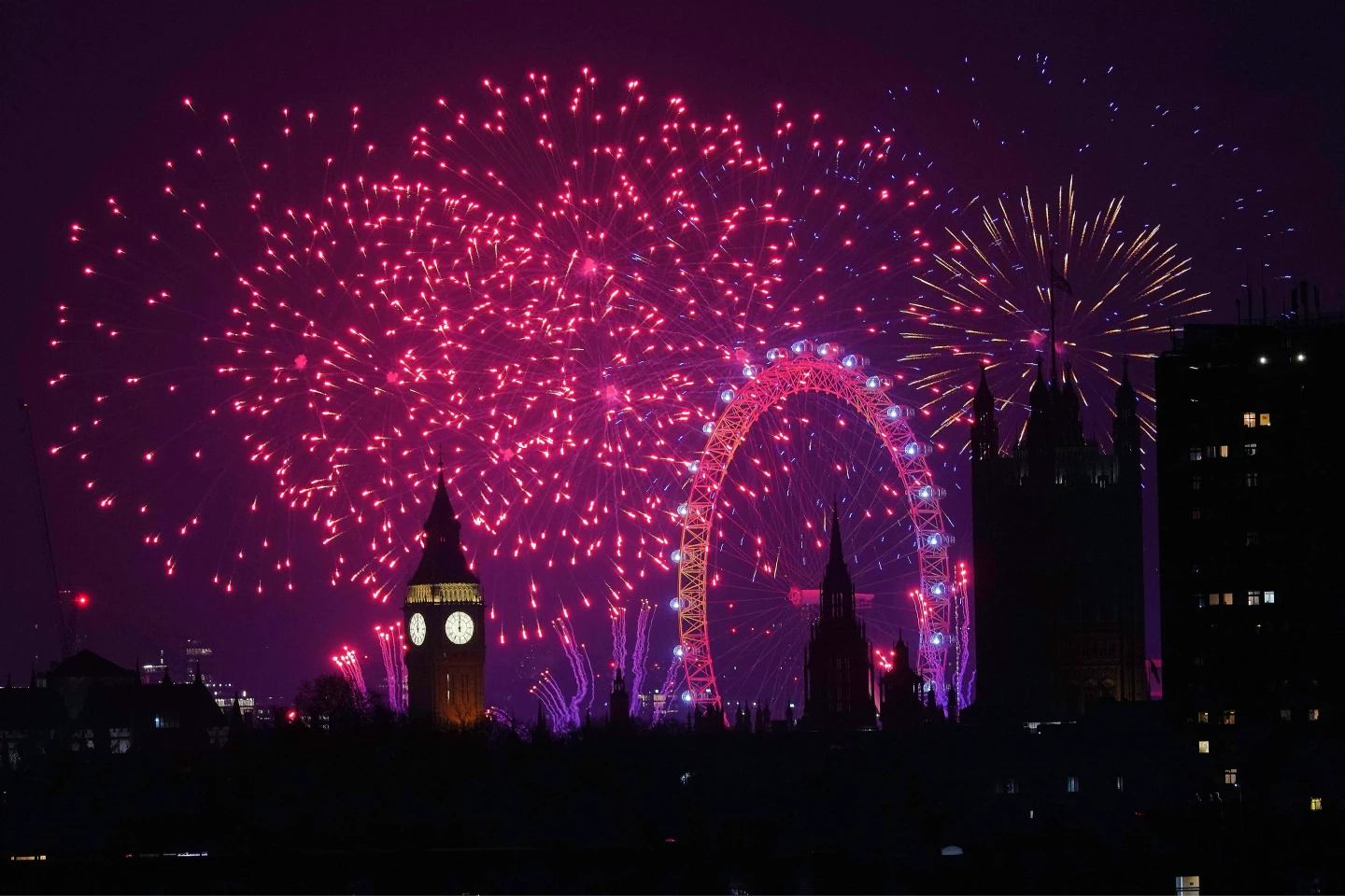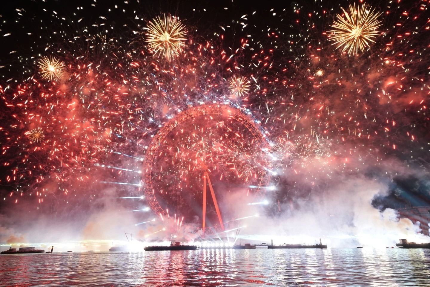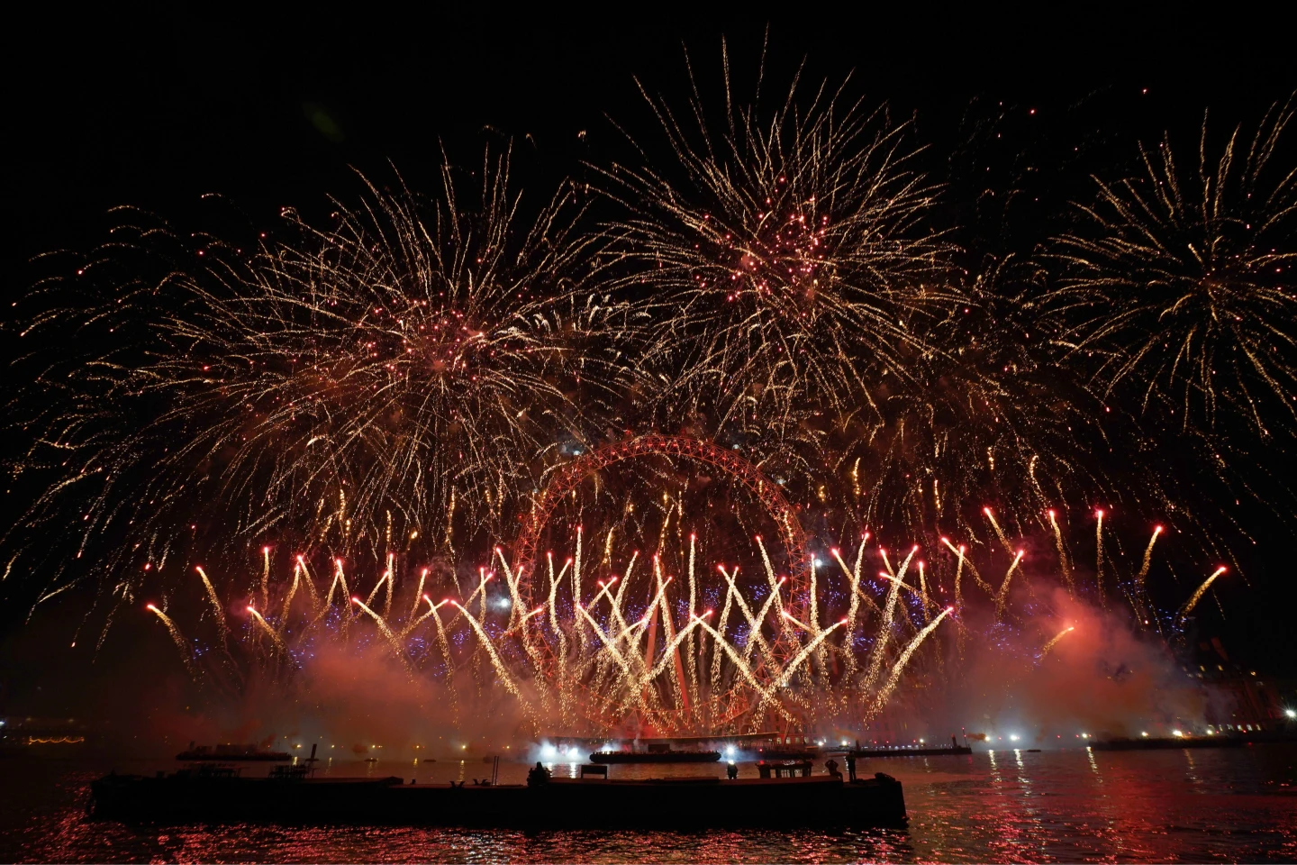 英國廣播公司(BBC)報導,隨著著名的「大笨鐘」午夜鐘聲響起,架設在「倫敦眼」前方駁船上的煙火瞬間綻放,拉開這場氣勢滂薄的視聽盛宴序幕。