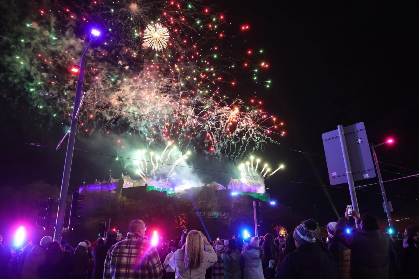 在愛丁堡舉行的經典街頭派對霍格曼尼(Hogmanay)慶祝活動中,約有4萬5000名民眾齊聚一同歡慶迎接新年。該活動去年因天候惡劣,遭主辦單位取消。
