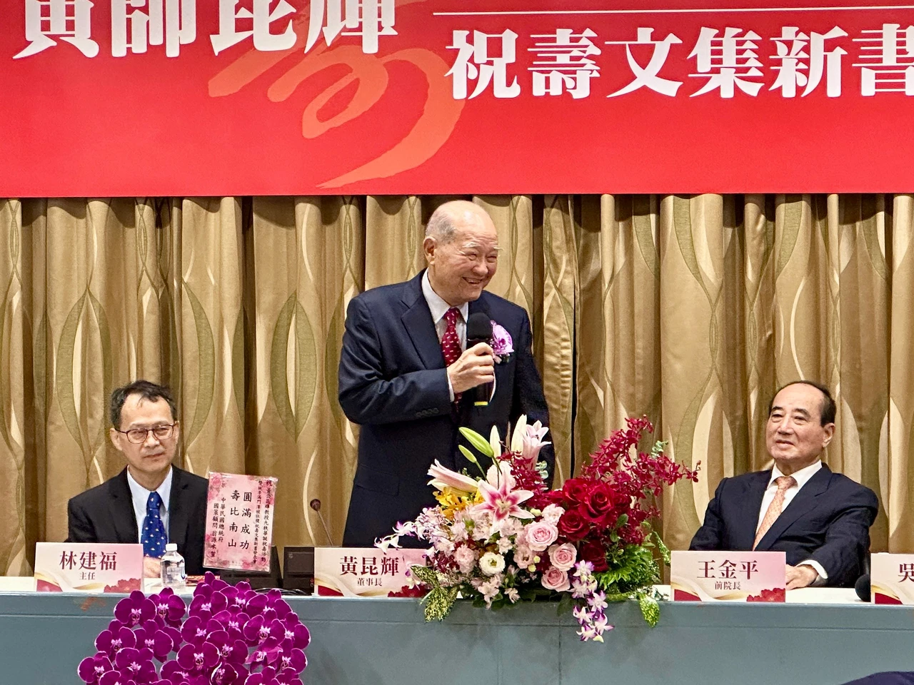 黃昆輝致詞時幽默表示,他年輕時去摸骨算命,算命師說他只能活到77歲,但不好意思現在已經90歲。