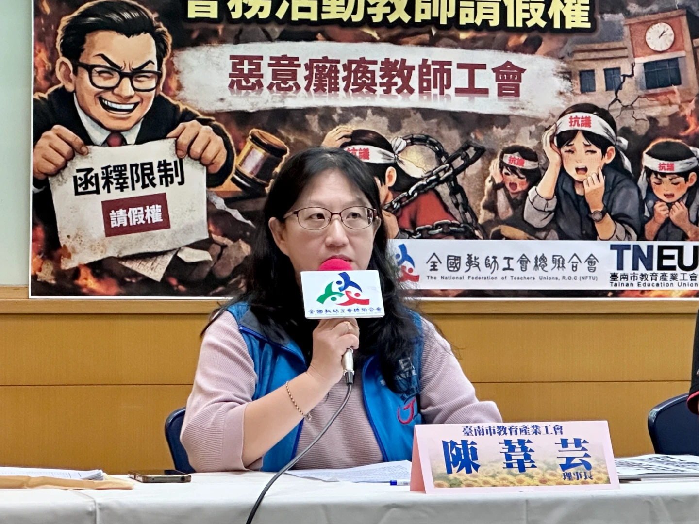 陳葦芸解釋,依法工會理監事可獲得會務假,另外,《教師請假規則》當中規範,教師接受機關團體邀請參加會議或活動,經學校同意也可請公假,因此過往教師工會的其他成員,可透過此條文,以公假參加工會活動,但台南市教育局透過函釋,要求各校不能給予會務假,也不能讓基層老師,依照《教師請假規則》,以公假參與工會活動。