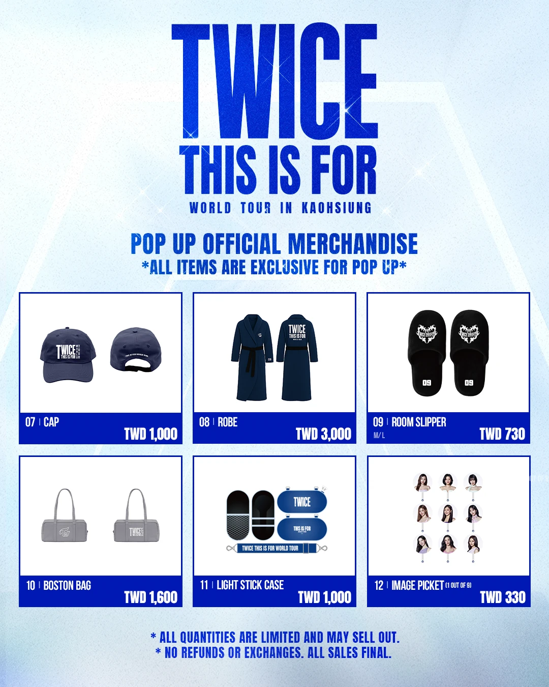 為回饋一路支持的 ONCE(粉絲名),TWICE演唱會限定巡迴快閃店今天15日在高雄義享時尚廣場1F驚喜登場,將限時舉辦至11月24日。快閃店不僅帶來巡迴周邊、時尚單品與精緻收藏品,更特別推出限量滿額回饋活動,贈送限定版小卡,為粉絲帶來最限量、最搶手的限定商品。
