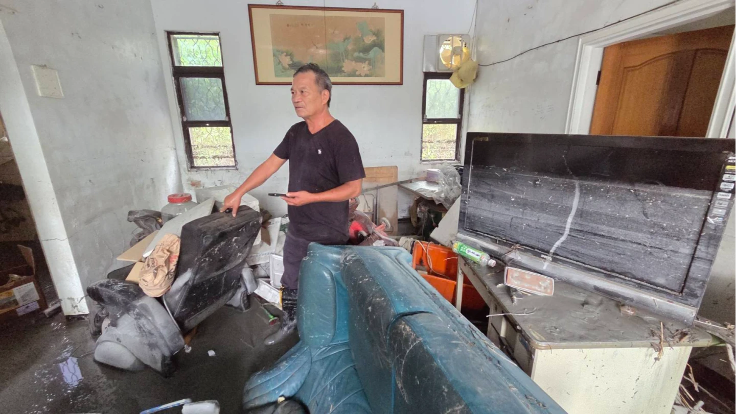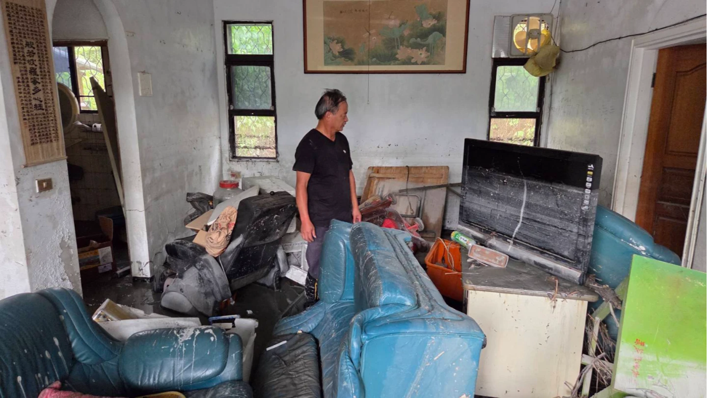 他說,以前沒有這麼嚴重,事前有收到預警通知,但沒想到這麼嚴重,過去水不會淹進屋子裡,雖然目前水退了,但是因為停水,也沒辦法仔細清理乾淨,只能先靠自己接雨水應急。