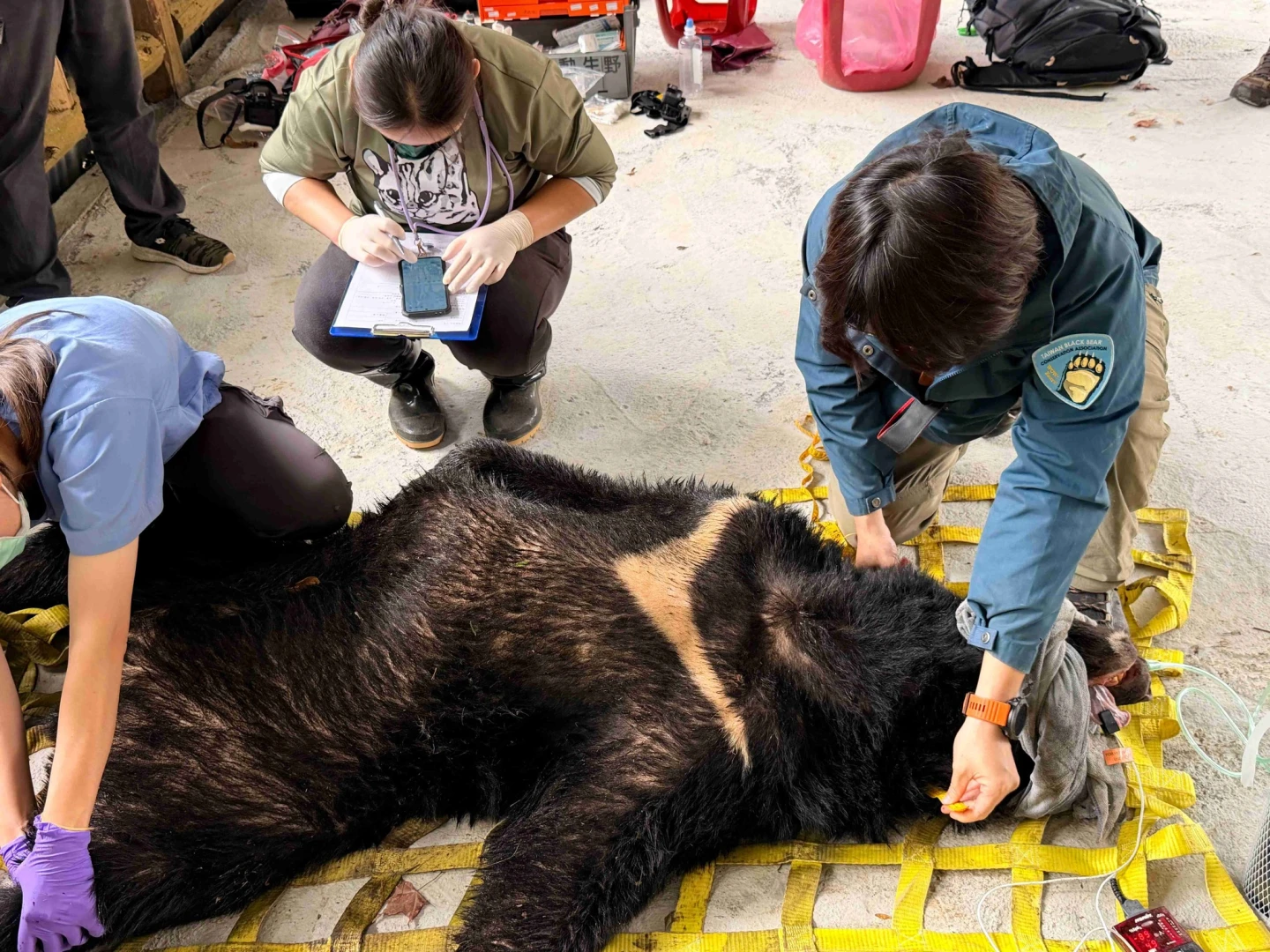 為維護人熊平安,團隊在確認黑熊健康狀況無虞後,立即為其裝設衛星發報器,並載運至遠離部落的「石山引水道」深處進行移地野放。