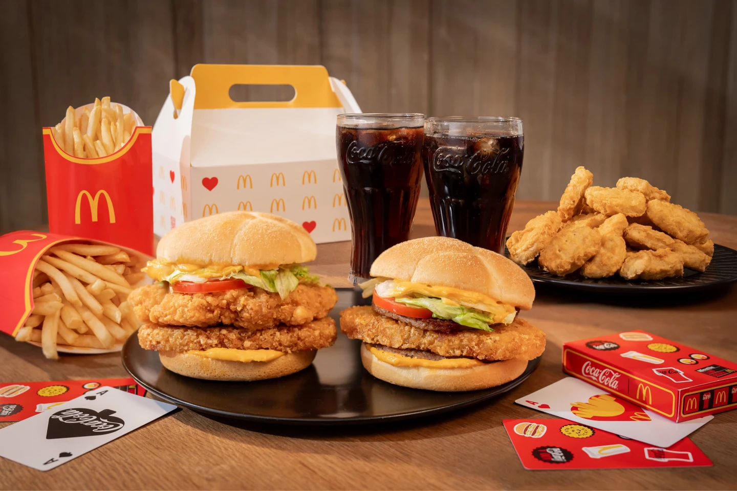 同場加映,10月8日起至11月4日(或送完為止),購買分享盒加點指定飲品買一送一,或透過歡樂送訂購分享餐,即可免費獲得可口可樂®聯名限量「麥麥同樂撲克牌」