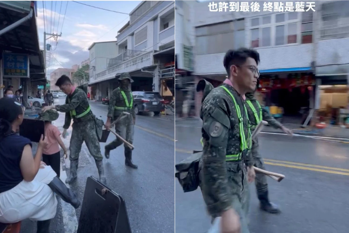 有片|謝謝你超人!國軍救災「迷彩帽送女童」互動暖哭網 本尊曝動機:付出辛勞都值得了