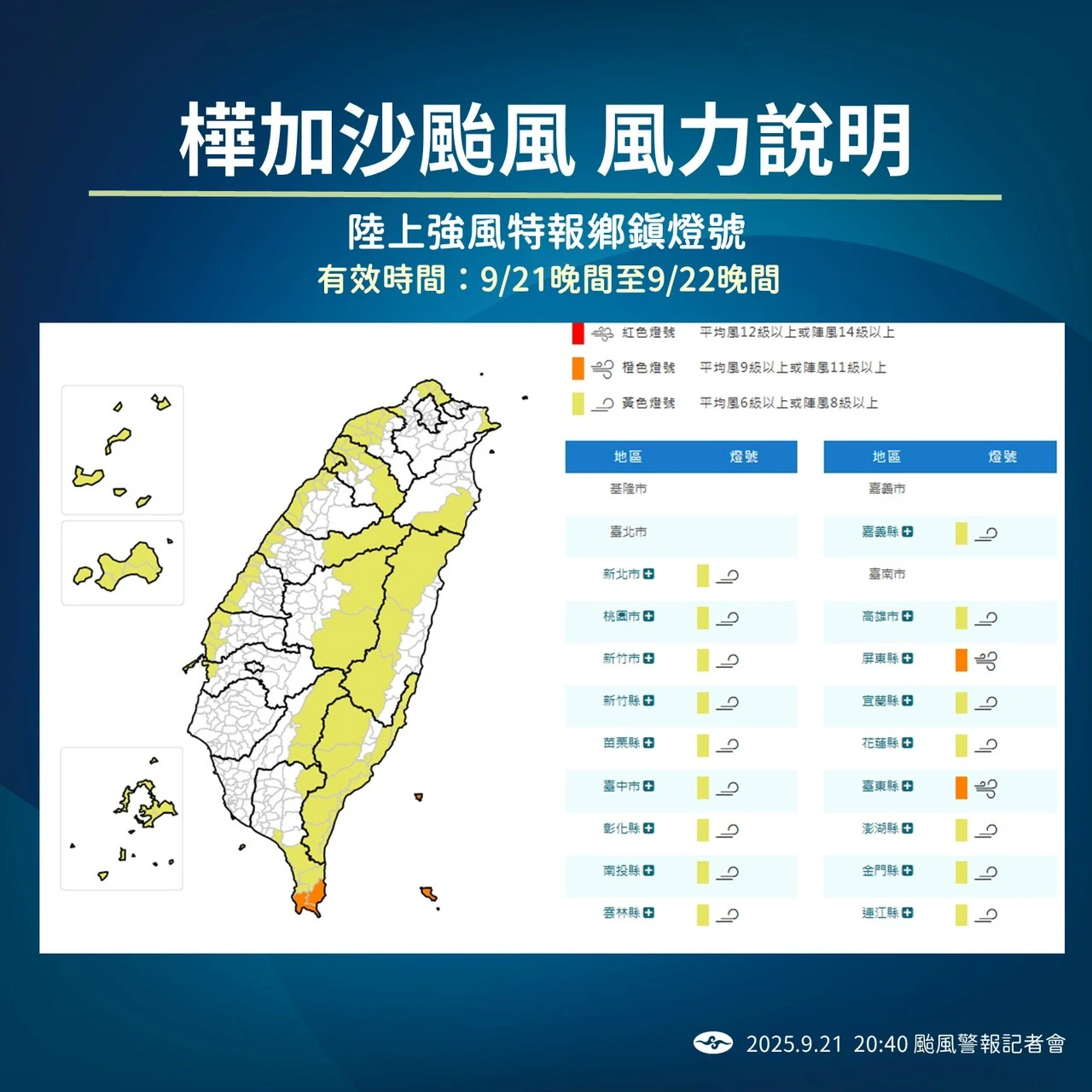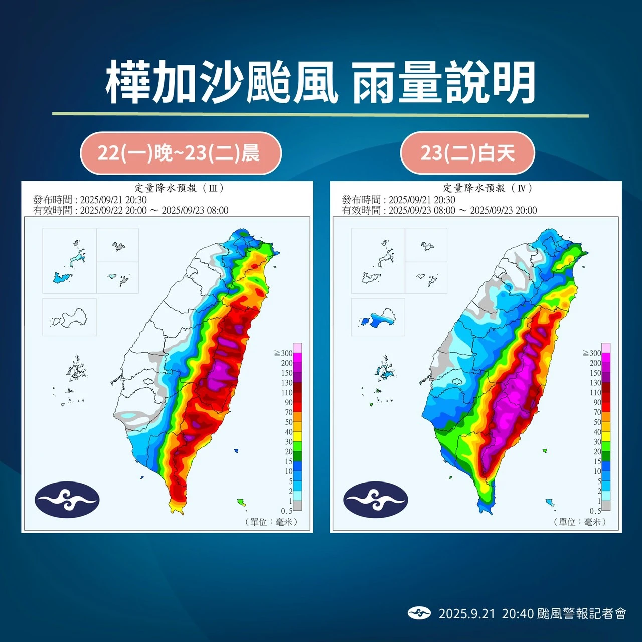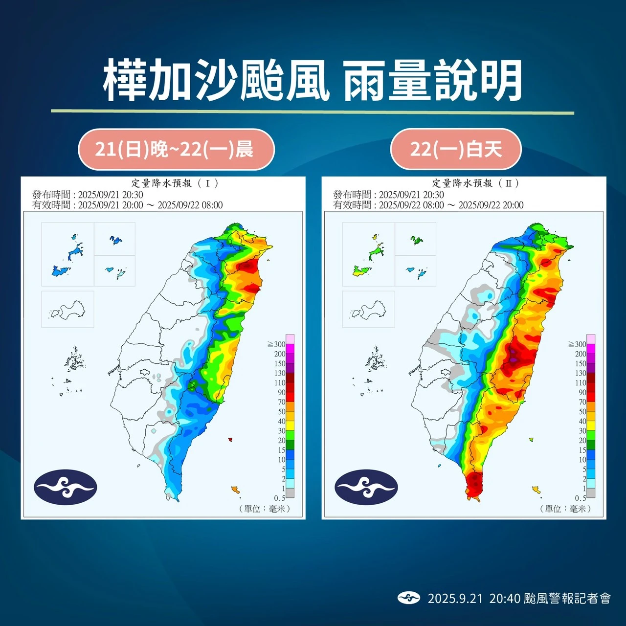 【記者賴昀岫/台北報導】中央氣象署表示,強颱樺加沙過去3小時持續增強,持續往西前進,預計明晚就會抵達鵝鑾鼻正南方位置,雨量最主要熱區,集中在東半部,宜蘭、花蓮及台東地區的山區,可能出現500-800毫米的累積雨量;風力部分,嘉義以北一直到基隆北海岸,宜蘭、花蓮、台東到恆春半島,基本上都是強風範圍,部分離島地區更可能達到13級以上強陣風。