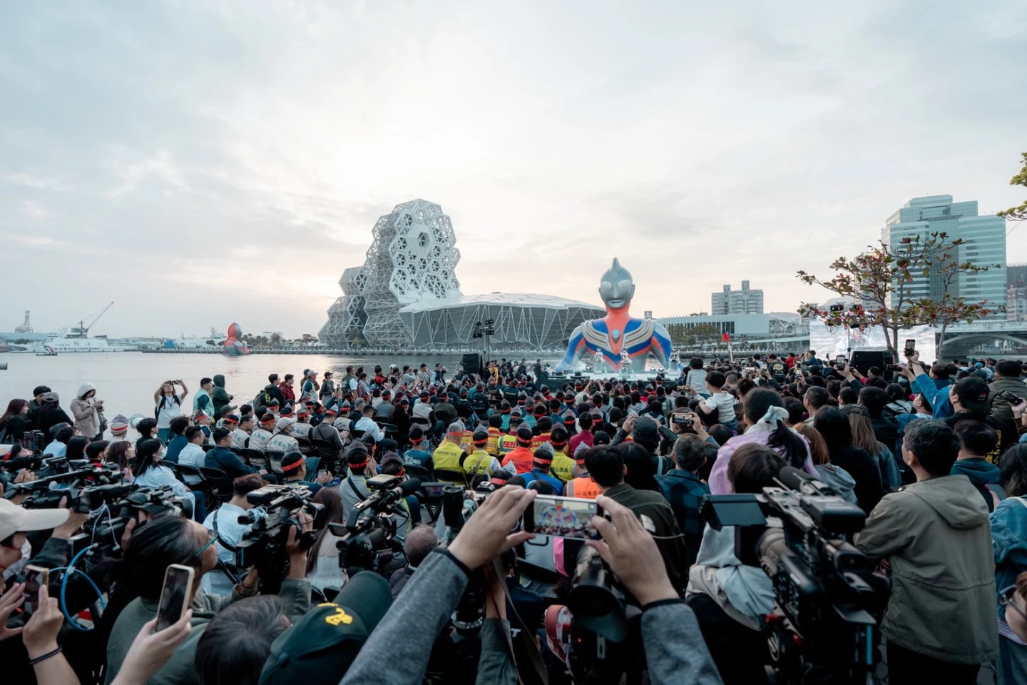 「2026高雄冬日遊樂園」以「超人力霸王降臨港都」為策展主軸,結合愛河灣港灣景觀與主題裝置,打造高雄冬季最具辨識度的城市節慶風景。觀光局提供 zoomin