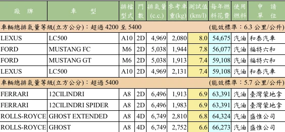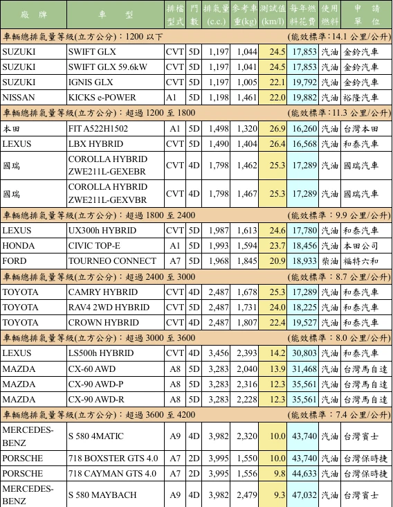 能源署說明,114年「車輛油耗指南」所公布的能源效率測試值,均在實驗室標準條件下測得,實際上路時則會因天候、路況、塞車狀況、空調使用及個人駕駛習慣等因素,每公升汽(柴)油或每度電實際可行駛里程數,可能低於指南所示的能源效率測試值。