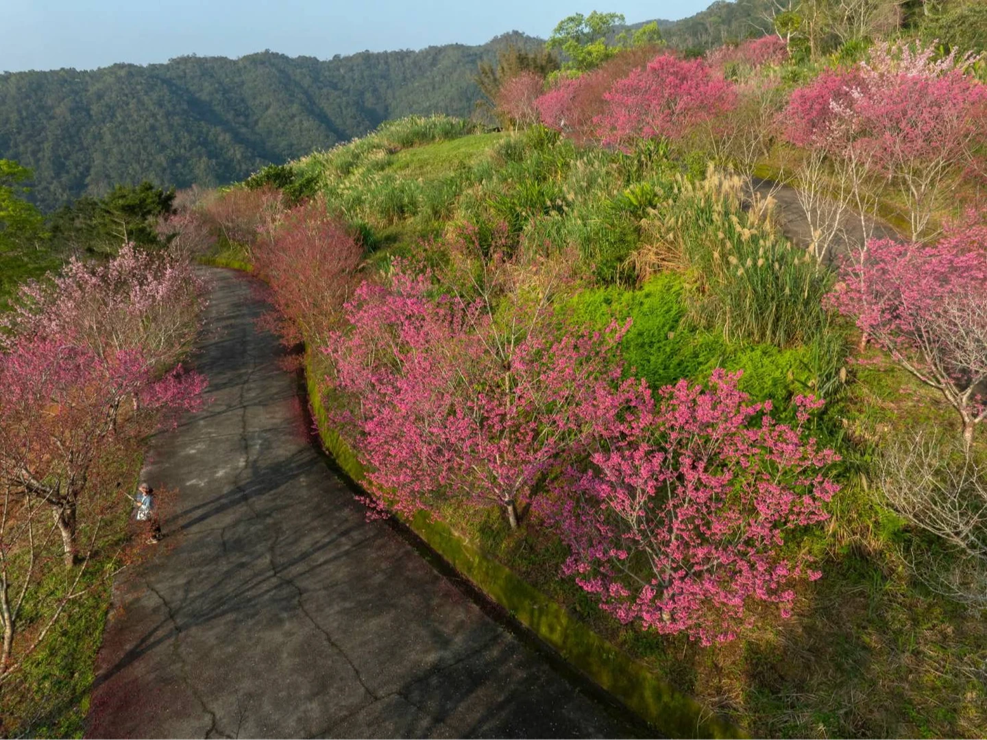 李筱婷介紹員山鄉賞櫻亮點「燈篙林道」,全長3.7公里,沿途種植多種櫻花,花期1月底到3月,可觀賞不同櫻花,燈篙林道中有一段長約800公尺的「肖楠步道」,行步間可聞到來自肖楠木的芬多精味道,走起來十分舒服。