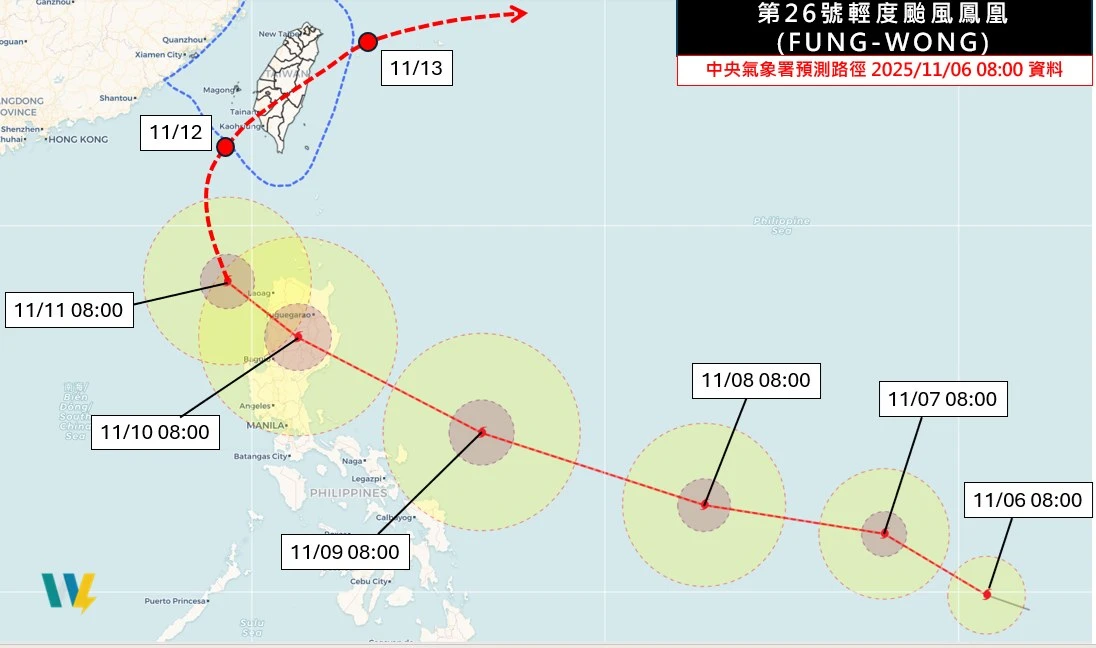 【記者盧麗蓮/綜合報導】今天生成的鳳凰颱風來者不善,預計下周一經過呂宋島進入南海,下周二(11日)往北轉接近台灣海峽南部,下周三(12日)經過台灣上空。這個被封為「又大又強」的颱風,靠近台灣時雖強度稍微減弱,但因屬於大環流系統,不得不小心,其中大台北、宜蘭一帶下周一就要注意,是否會有東北季風跟颱風外圍環流交會產生顯著降雨。