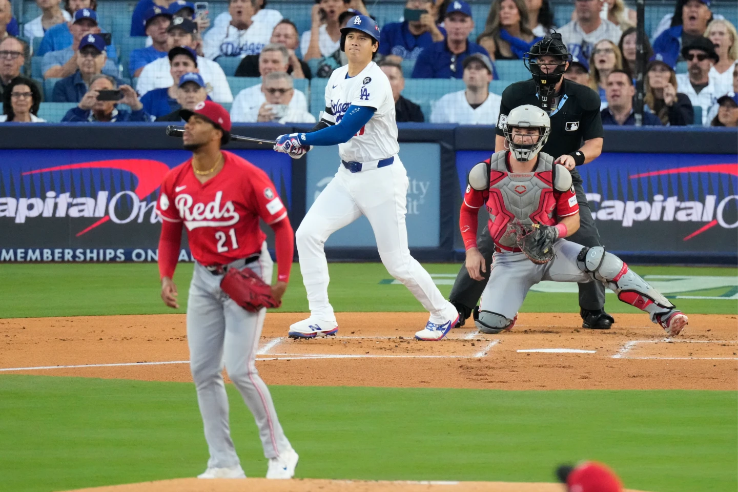 大谷翔平今天第1次站上打擊區就敲出首局首打席全壘打,幫助球隊先馳得點,他掌握住紅人先發投手格林(Hunter Greene)一顆100.4英里四縫線速球扛出右外野全壘打牆外,這一轟擊球初速117.7英哩擊球初速,改寫史上面對100英哩以上速球的全壘打最快擊球初速。
