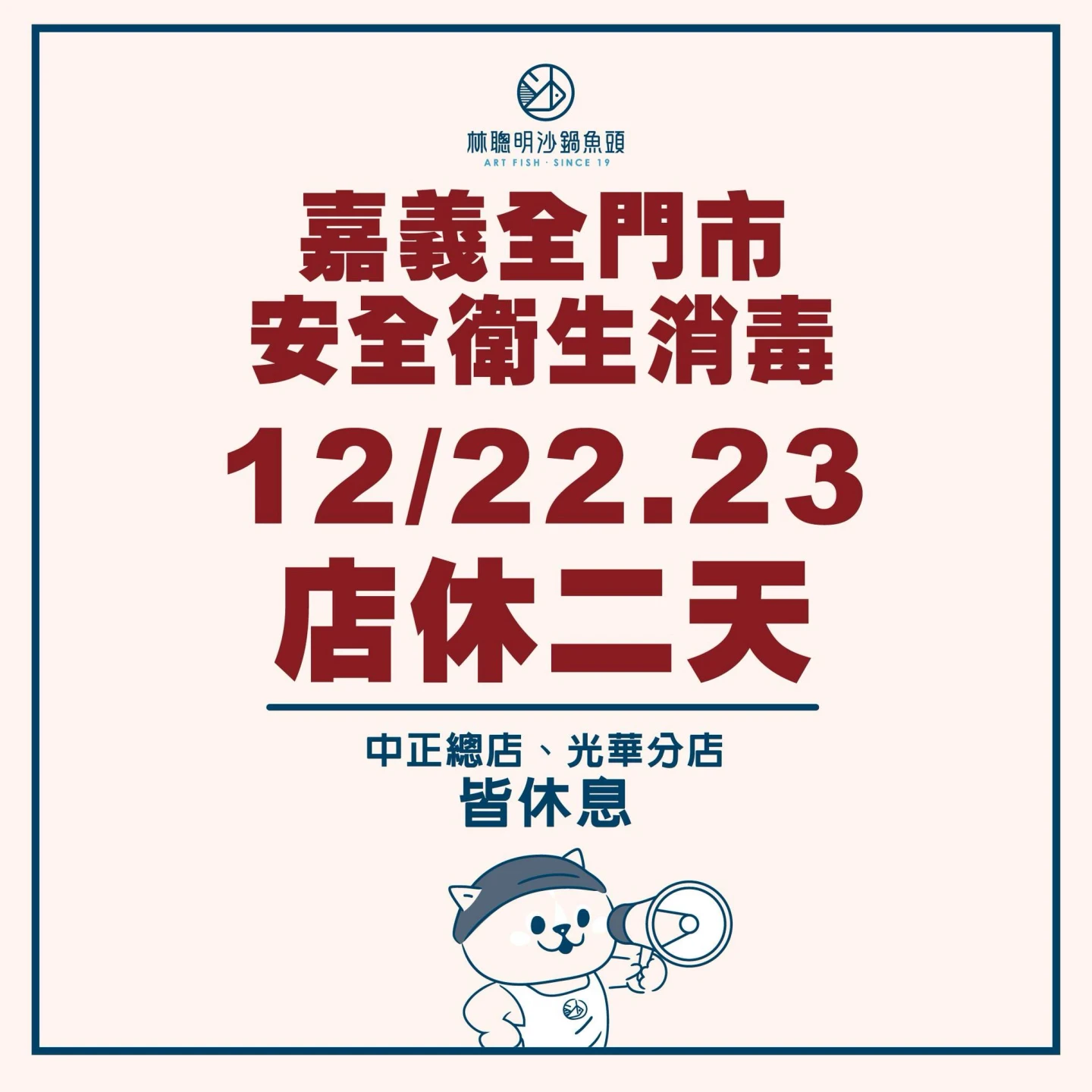 業者今早(22日)再發聲明,今、明2天店休全面消毒,「嘉義中正總店與光華分店自即日起啟動自主消毒與衛生管理作業,並將於 12/22–12/23 暫停營業兩日。」同時「針對相關原物料與供應鏈端進行調查與檢視作業,確保供應來源之品質與安全。」也會「全面檢視與檢討工作流程及相關作業內容,並加強員工教育訓練,確實落實餐飲安全管理。」
