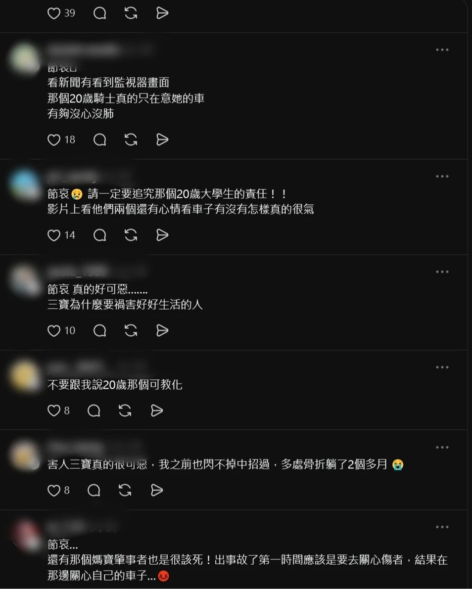 網友紛紛留言「節哀」,有人抨擊「只顧自己的車!讓人抓狂,真的是白目的可以!」、「有夠沒心沒肺」。