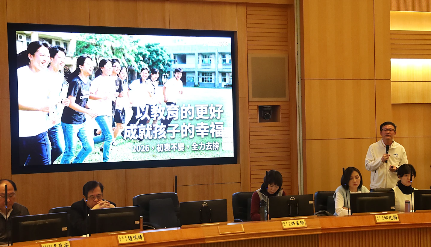 張明文以「行政減量」指出, 2025年正式啟動「AI教育局」,逐步將AI導入行政日常,透過「AI會議淘金術」即時彙整意見、快速分析重點,協助政策聚焦;行政作業上,則善用AI協助產出會議紀錄、新聞稿、計畫及簡報初稿,再進行潤飾,從半天至一天作業,縮短到半小時完成。